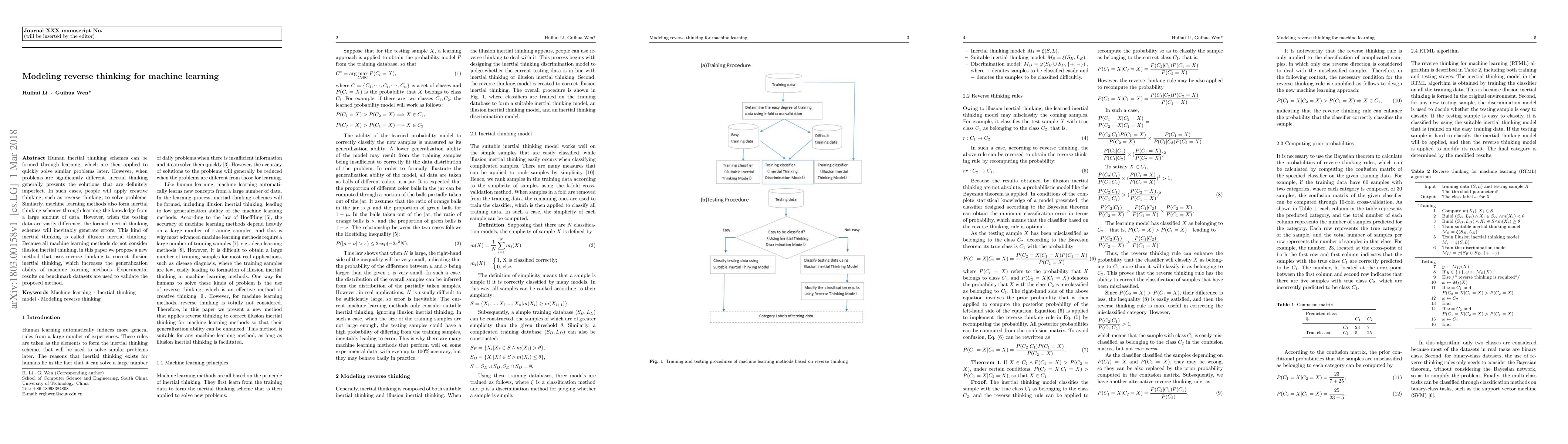 This paper proposes a novel method to correct "illusion inertial thinking" in machine learning by employing reverse thinking, thereby enhancing the generalization ability of learning models when faced with vastly different testing data. Experimental validation on benchmark datasets demonstrates the effectiveness of the proposed approach.
