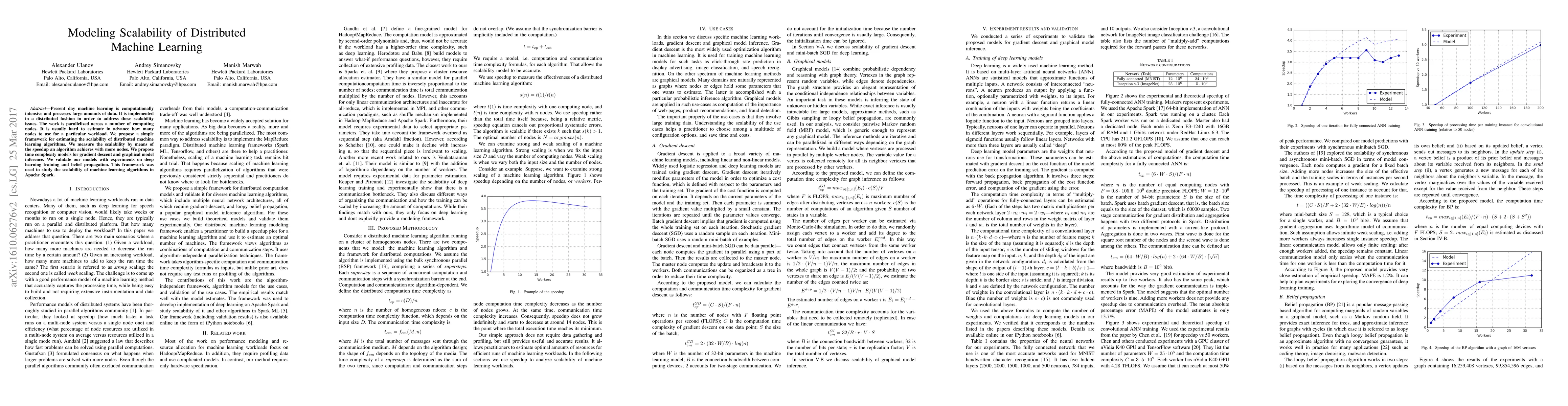 This research proposes a framework to estimate the scalability of distributed machine learning algorithms, focusing on speedup with more nodes. It introduces time complexity models for gradient descent and graphical model inference, validated through experiments on deep learning training and belief propagation, with applications in Apache Spark.