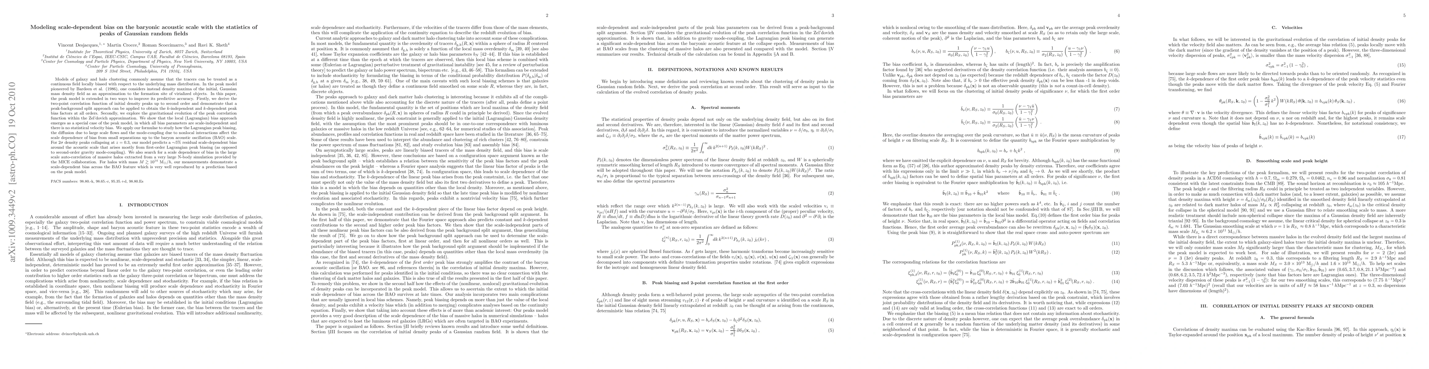 Models of galaxy and halo clustering commonly assume that the tracers can be treated as a continuous field locally biased with respect to the underlying mass distribution. In the peak model pioneered by BBKS, one considers instead density maxima of the initial, Gaussian mass density field as an approximation to the formation site of virialized objects. In this paper, the peak model is extended in two ways to improve its predictive accuracy. Firstly, we derive the two-point correlation function of initial density peaks up to second order and demonstrate that a peak-background split approach can be applied to obtain the k-independent and k-dependent peak bias factors at all orders. Secondly, we explore the gravitational evolution of the peak correlation function within the Zel'dovich approximation. We show that the local (Lagrangian) bias approach emerges as a special case of the peak model, in which all bias parameters are scale-independent and there is no statistical velocity bias. We apply our formulae to study how the Lagrangian peak biasing, the diffusion due to large scale flows and the mode-coupling due to nonlocal interactions affect the scale dependence of bias from small separations up to the baryon acoustic oscillation (BAO) scale. For 2-sigma density peaks collapsing at z=0.3, our model predicts a ~ 5% residual scale-dependent bias around the acoustic scale that arises mostly from first-order Lagrangian peak biasing (as opposed to second-order gravity mode-coupling). We also search for a scale dependence of bias in the large scale auto-correlation of massive halos extracted from a very large N-body simulation provided by the MICE collaboration. For halos with mass M>10^{14}Msun/h, our measurements demonstrate a scale-dependent bias across the BAO feature which is very well reproduced by a prediction based on the peak model.