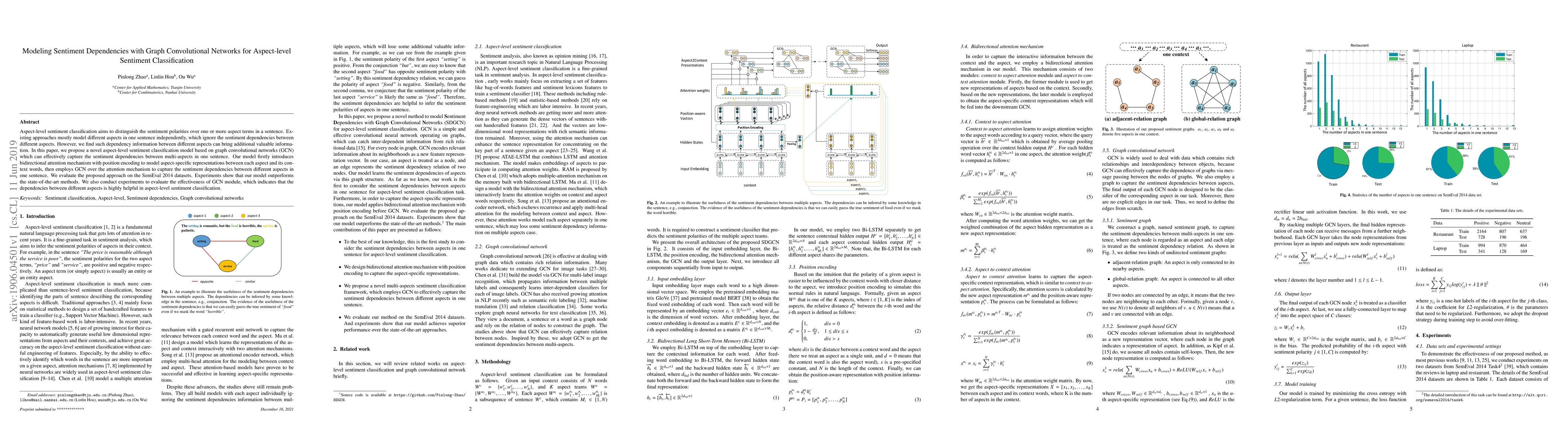 This paper proposes a novel graph convolutional network (GCN) model for aspect-level sentiment classification that captures sentiment dependencies between aspects using a bidirectional attention mechanism and position encoding. The GCN module effectively leverages these dependencies, outperforming state-of-the-art methods on SemEval 2014 datasets.