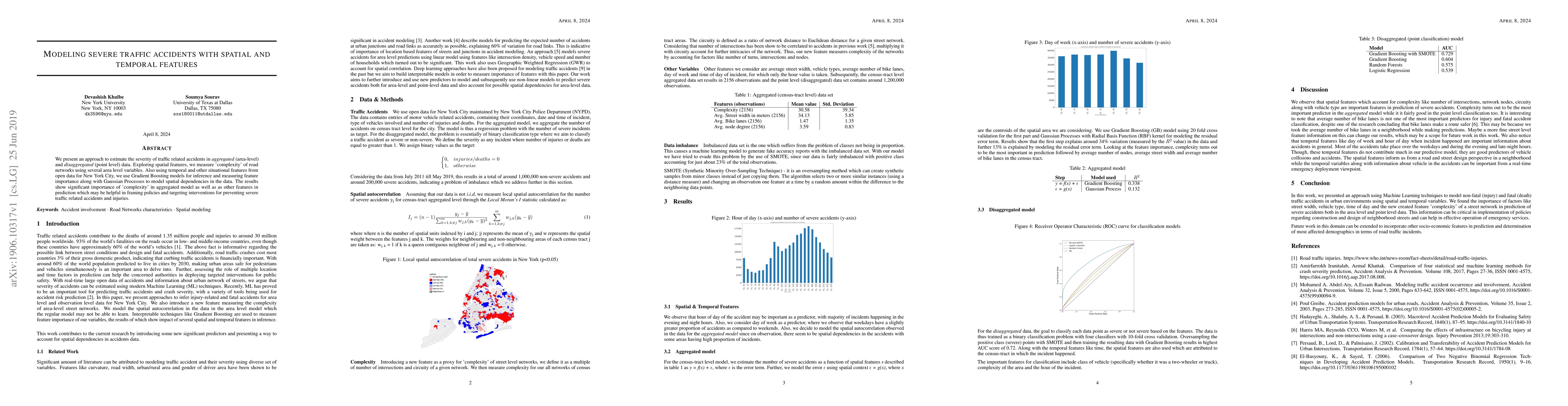 This study uses spatial and temporal features to model severe traffic accidents in NYC, finding complexity of road networks significantly affects prediction, with implications for preventing accidents and injuries.