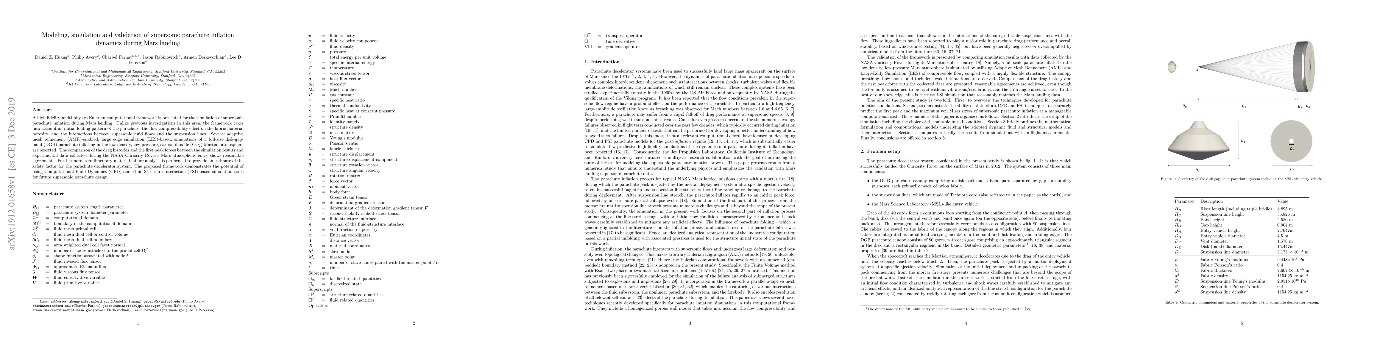 This paper presents a high-fidelity computational framework for simulating supersonic parachute inflation during Mars landing, incorporating initial folding, compressibility effects, and fluid-structure interactions. The framework's results show good agreement with experimental data from the Curiosity Rover, indicating its potential for future parachute design.