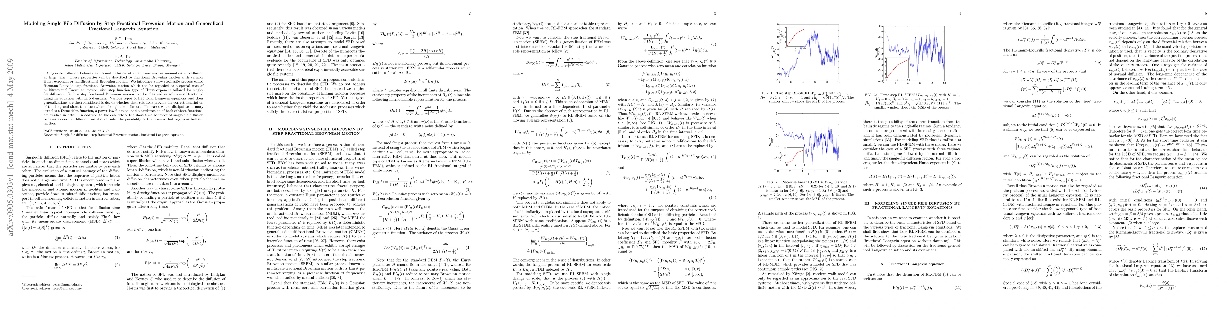 This paper models single-file diffusion using Riemann-Liouville step fractional Brownian motion and generalized fractional Langevin equations, analyzing how different dissipative memory kernels influence its short and long-time behaviors, including normal and anomalous diffusion regimes.