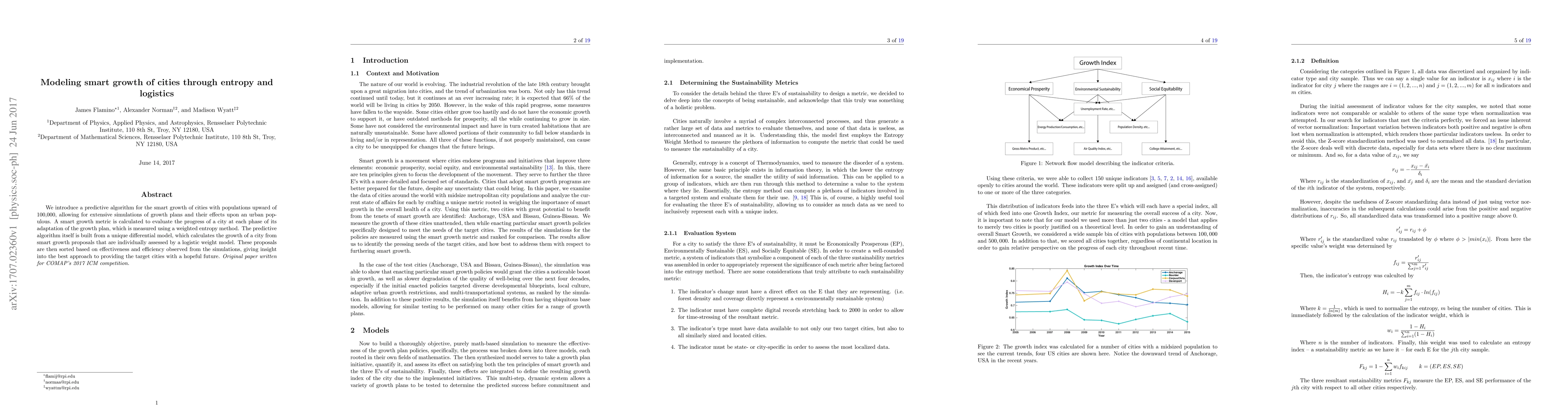 The research introduces a predictive algorithm for smart city growth using entropy and logistics, incorporating a smart growth metric calculated via weighted entropy and a differential model assessing growth proposals with a logistic weight model.