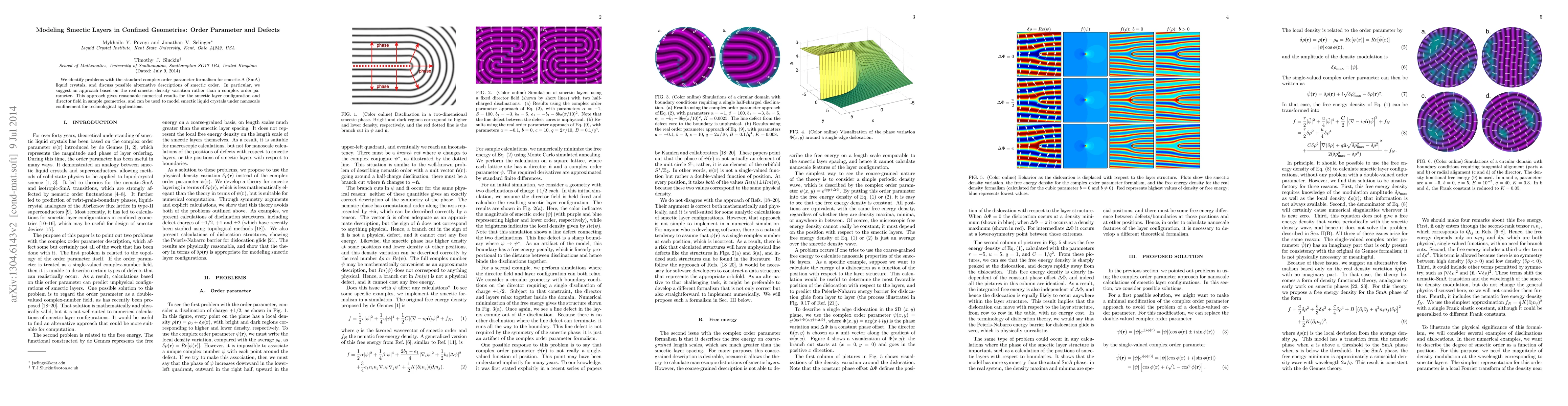 This paper critiques the standard complex order parameter method for modeling smectic-A liquid crystals, proposing a real smectic density variation approach instead. This alternative method accurately predicts layer configurations and director fields in confined nanoscale geometries, offering potential for technological applications.