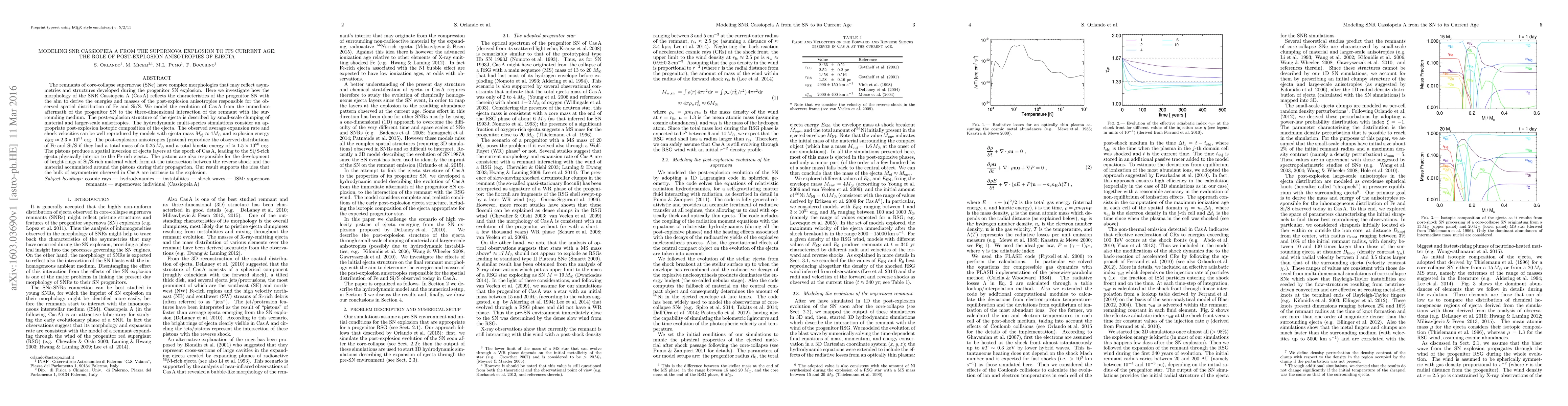 This paper models the evolution of the SNR Cassiopeia A, attributing its complex morphology to post-explosion anisotropies in the ejecta. The study finds that the observed spatial distribution of Fe and Si/S can be explained by ejecta mass and explosion energy, with intrinsic asymmetries playing a significant role in the remnant's structure.