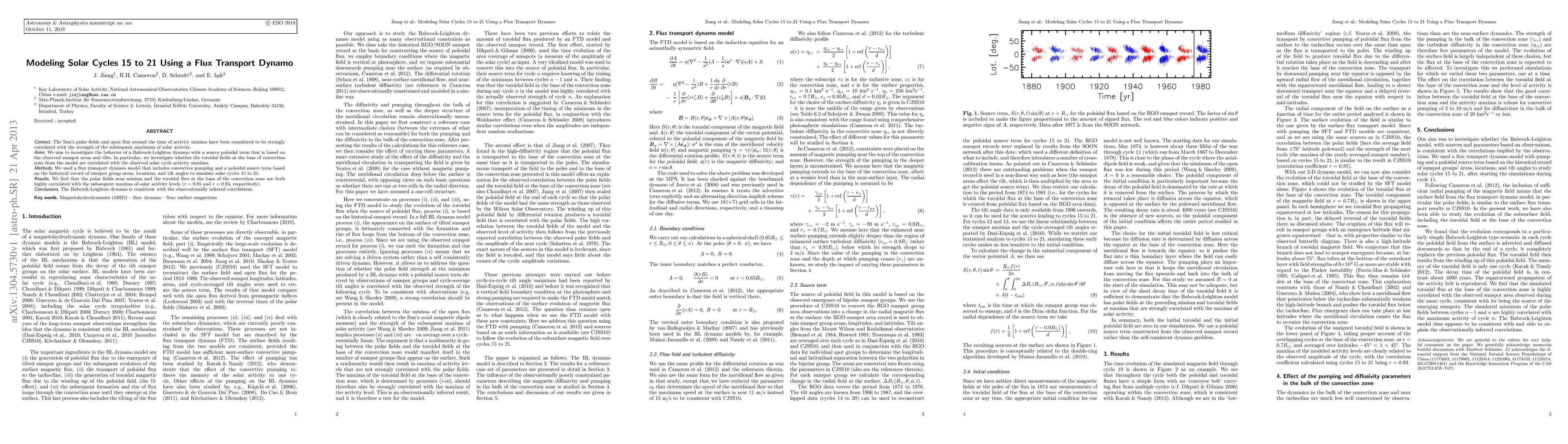 This study models solar cycles 15 to 21 using a flux transport dynamo, finding strong correlations between polar fields near minima and subsequent solar activity maxima. The model's toroidal flux correlates highly with observed solar cycle activity maxima, supporting the Babcock-Leighton dynamo mechanism.
