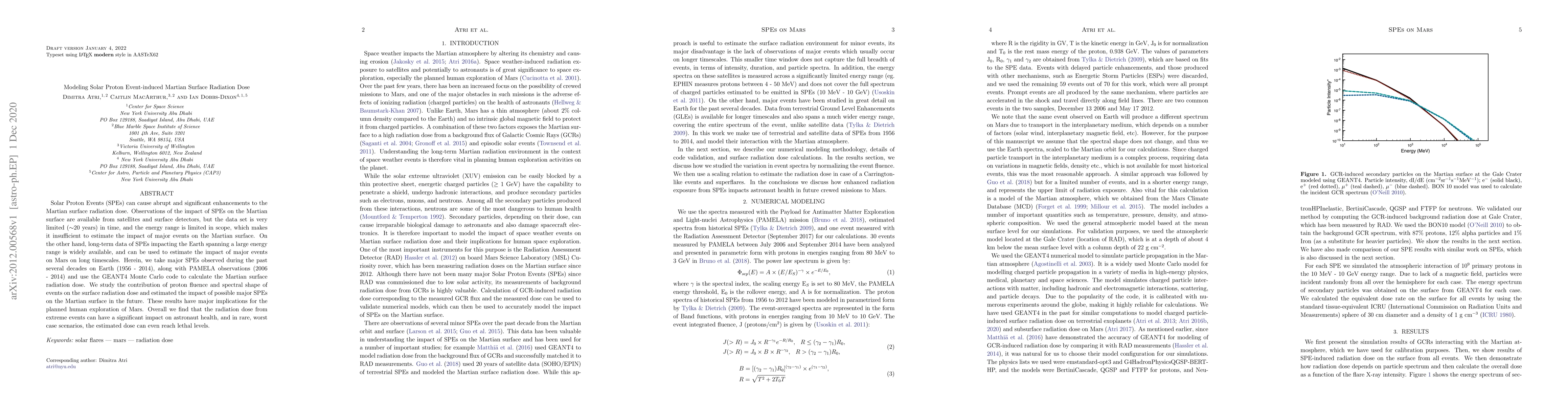 The paper presents a comprehensive modeling approach using GEANT4 to estimate Martian surface radiation dose from SPEs, incorporating both Earth-based and PAMELA data.