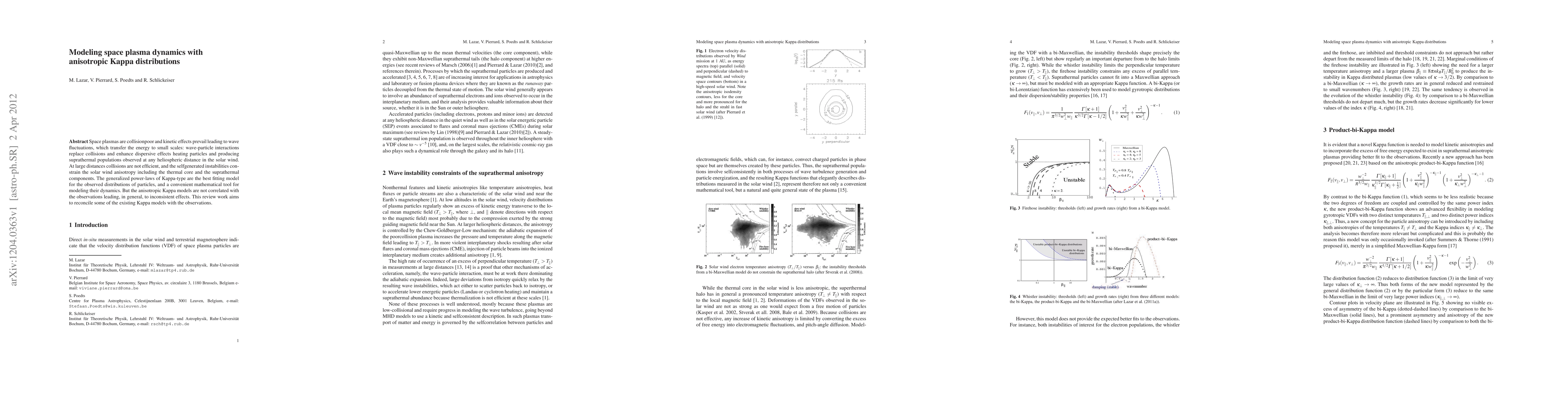 Space plasmas are collisionpoor and kinetic effects prevail leading to wave fluctuations, which transfer the energy to small scales: wave-particle interactions replace collisions and enhance dispersive effects heating particles and producing suprathermal populations observed at any heliospheric distance in the solar wind. At large distances collisions are not efficient, and the selfgenerated instabilities constrain the solar wind anisotropy including the thermal core and the suprathermal components. The generalized power-laws of Kappa-type are the best fitting model for the observed distributions of particles, and a convenient mathematical tool for modeling their dynamics. But the anisotropic Kappa models are not correlated with the observations leading, in general, to inconsistent effects. This review work aims to reconcile some of the existing Kappa models with the observations.