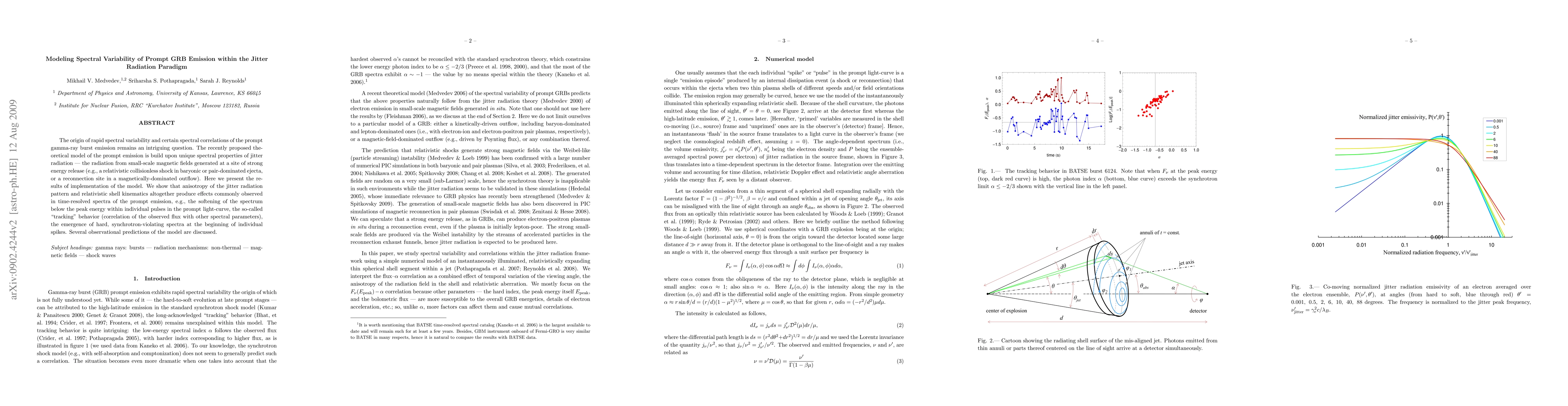 This paper models the spectral variability in gamma-ray burst emissions based on the jitter radiation paradigm, showing how anisotropic radiation and relativistic shell dynamics can produce observed spectral behaviors like "tracking" and pulse softening. The study also discusses its observational implications.
