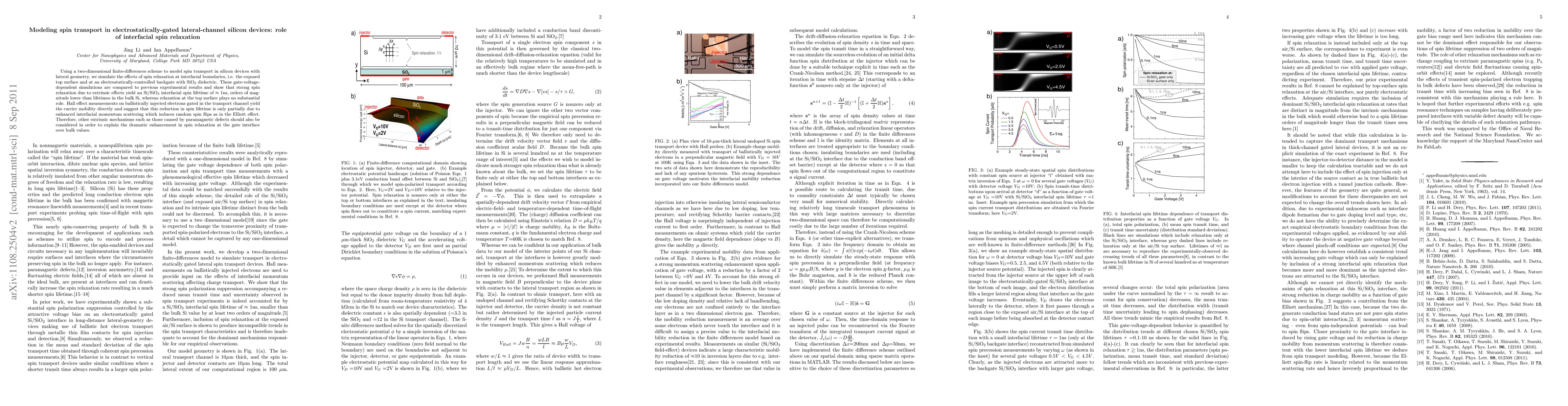 Researchers modeled spin transport in silicon devices with lateral geometry and found strong spin relaxation due to extrinsic effects, reducing the interfacial spin lifetime to ~ 1ns, orders of magnitude lower than bulk Si values.