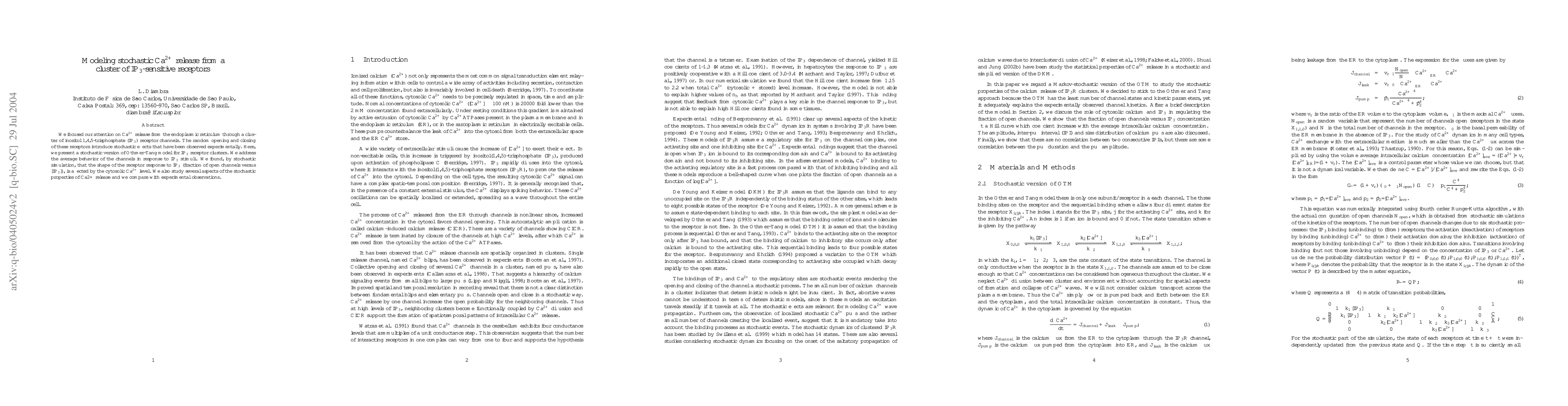 We focused our attention on Ca$^{2+}$ release from the endoplasmic reticulum through a cluster of inositol 1,4,5-trisphosphate (IP$_3$) receptor channels. The random opening and closing of these receptors introduce stochastic effects that have been observed experimentally. Here, we present a stochastic version of Othmer-Tang model for IP$_3$ receptor clusters. We address the average behavior of the channels in response to IP$_3$ stimuli. We found, by stochastic simulation, that the shape of the receptor response to IP$_3$ (fraction of open channels versus [IP$_3$]), is affected by the cytosolic Ca$^{2+}$ level. We also study several aspects of the stochastic properties of Ca${2+}$ release and we compare with experimental observations.