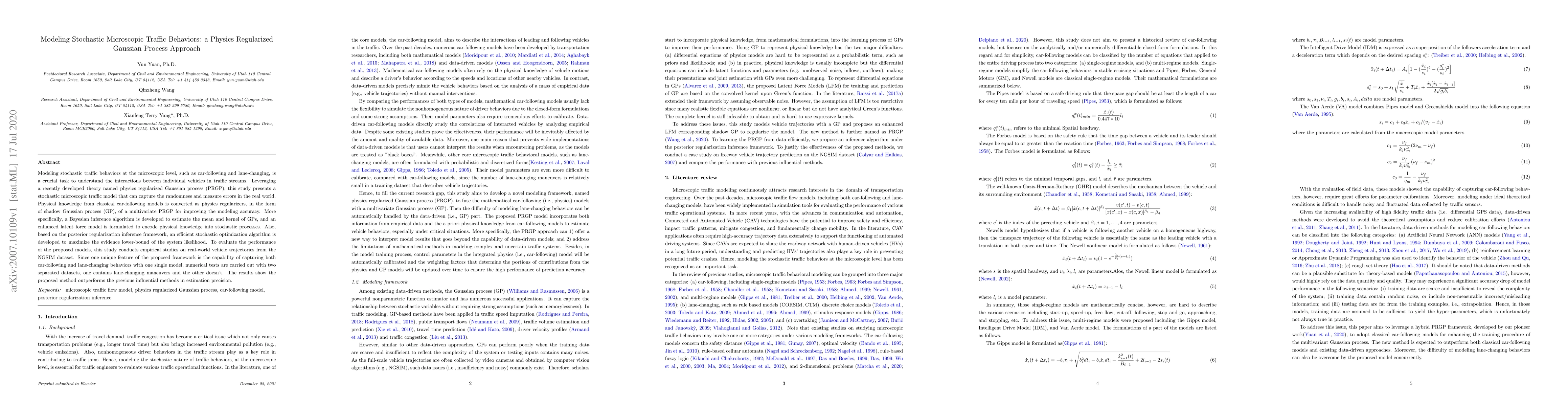 Researchers developed a new traffic modeling approach using physics regularized Gaussian process to capture car-following and lane-changing behaviors with high accuracy, outperforming previous methods in estimation precision.