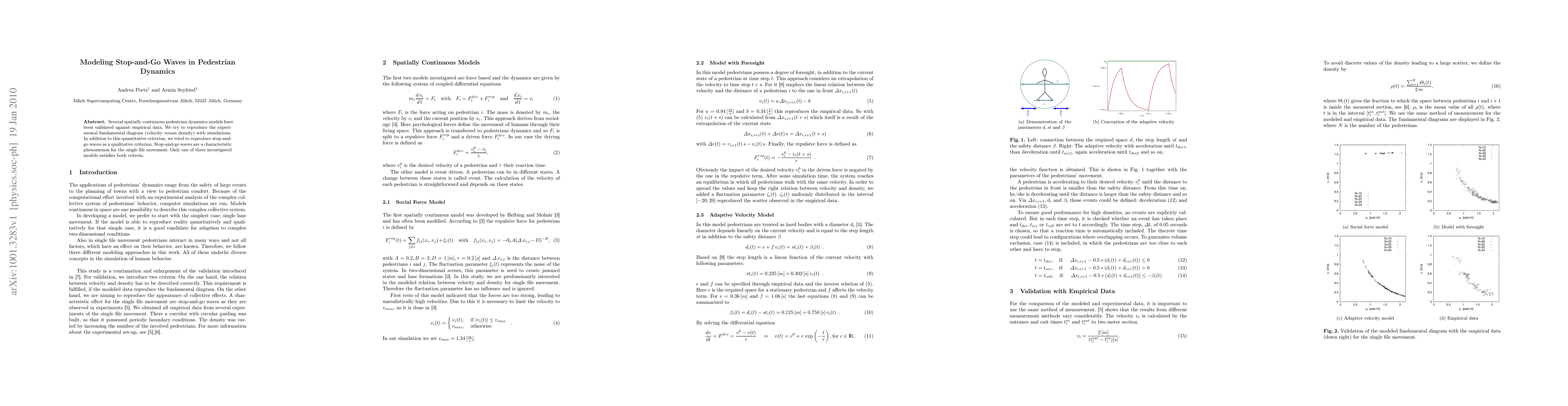 Several spatially continuous pedestrian dynamics models have been validated against empirical data. We try to reproduce the experimental fundamental diagram (velocity versus density) with simulations. In addition to this quantitative criterion, we tried to reproduce stop-and-go waves as a qualitative criterion. Stop-and-go waves are a characteristic phenomenon for the single file movement. Only one of three investigated models satisfies both criteria.