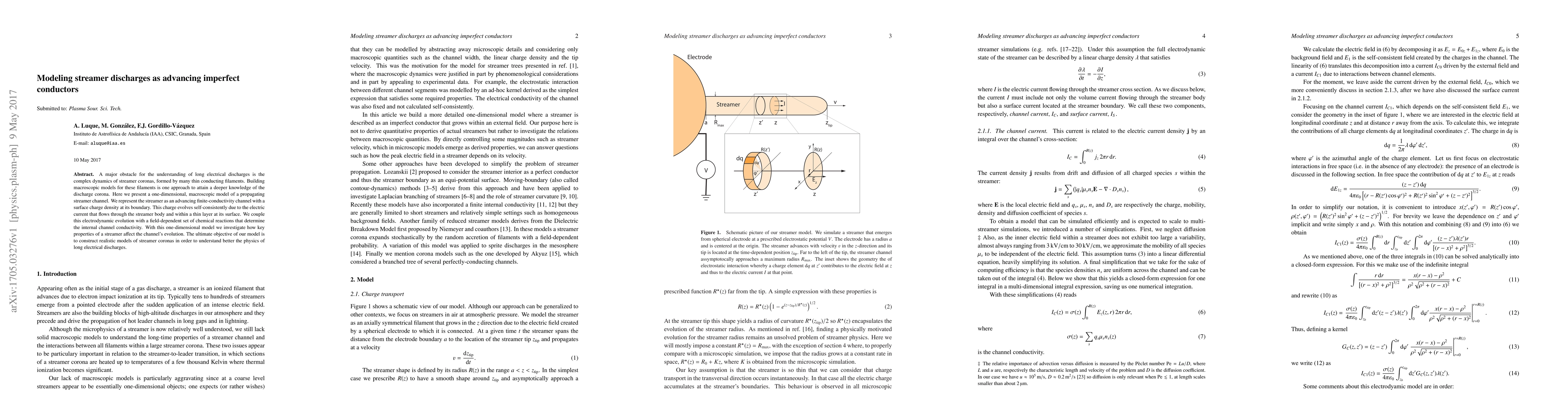 This paper presents a one-dimensional macroscopic model of a propagating streamer channel, representing it as an advancing imperfect conductor with evolving surface charge density. The model couples electrodynamic evolution with field-dependent chemical reactions to understand the dynamics of streamer coronas and improve knowledge of long electrical discharges.