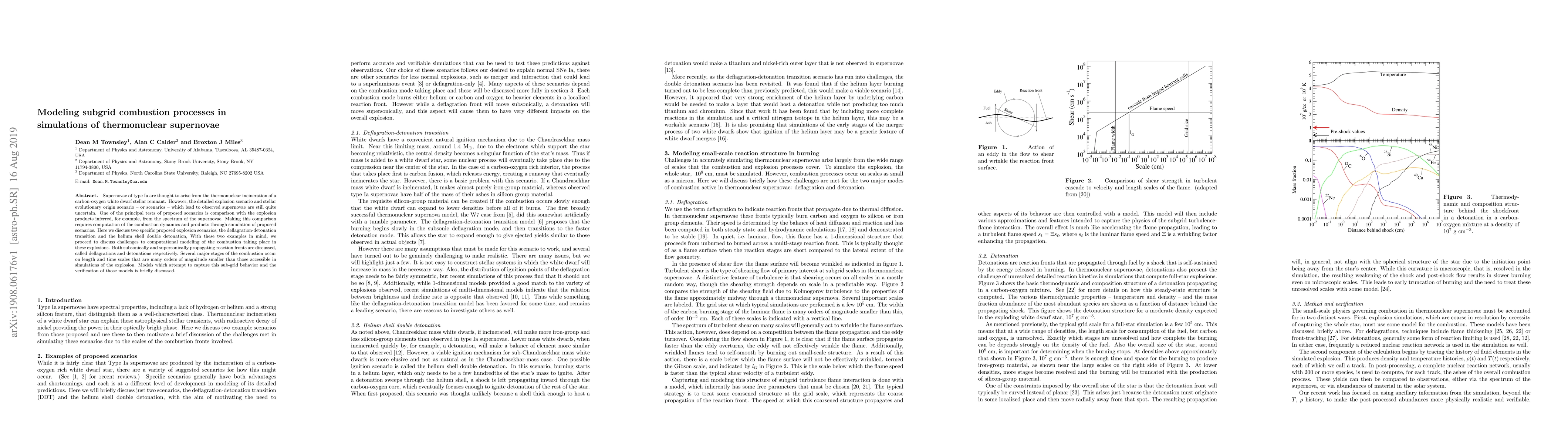 Researchers investigated subgrid combustion processes in thermonuclear supernovae simulations, aiming to improve understanding of their complex explosion scenarios and stellar evolutionary origins.