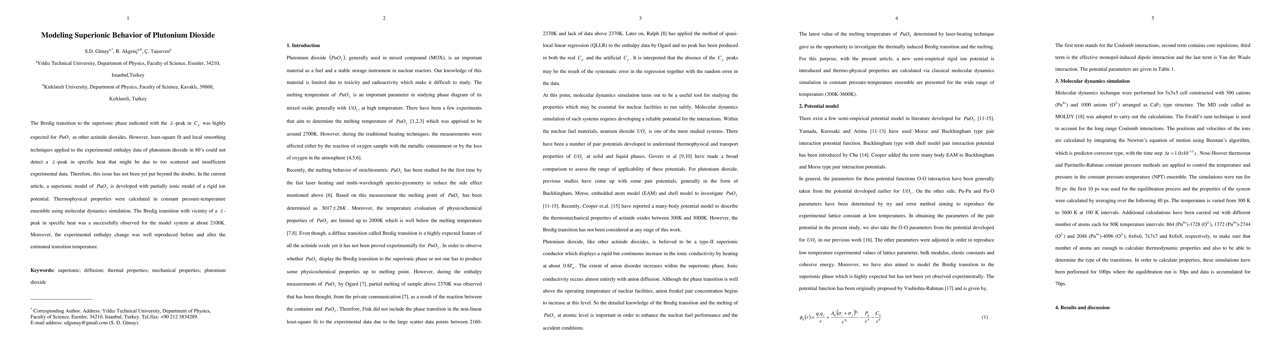 The Bredig transition to the superionic phase indicated with the lambda-peak in Cp was highly expected for PuO2 as other actinide dioxides. However, least-square fit and local smoothing techniques applied to the experimental enthalpy data of plutonium dioxide in 80's could not detect a lambda-peak in specific heat that might be due to too scattered and insufficient experimental data. Therefore, this issue has not been yet put beyond the doubts. In the current article, a superionic model of PuO2 is developed with partially ionic model of a rigid ion potential. Thermophysical properties were calculated in constant pressure-temperature ensemble using molecular dynamics simulation. The Bredig transition with vicinity of a lambda-peak in specific heat was a successfully observed for the model system at about 2100K. Moreover, the experimental enthalpy change was well reproduced before and after the estimated transition temperature.