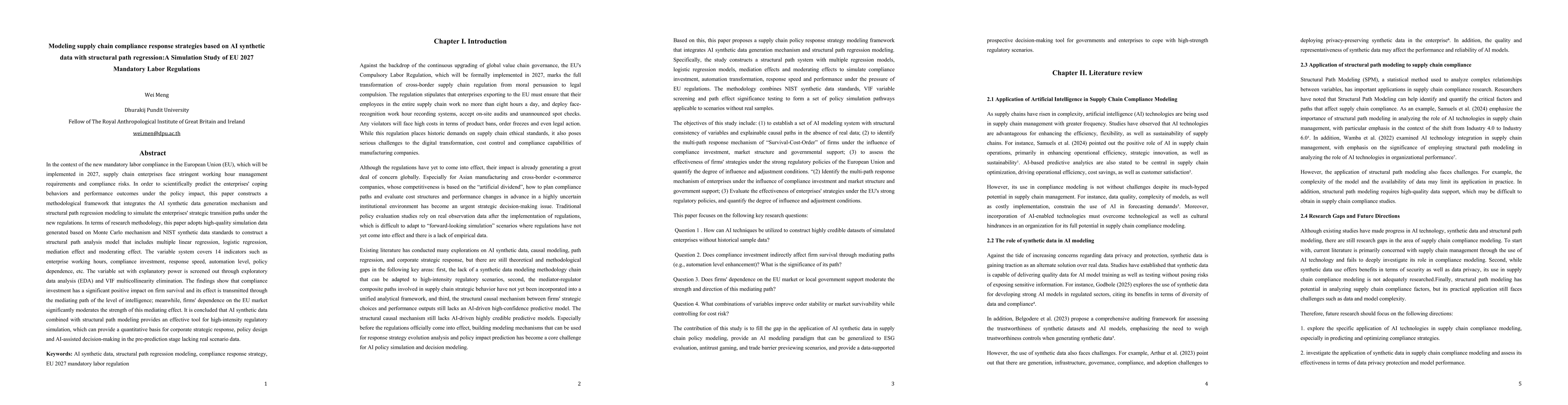 A study uses AI synthetic data and structural path regression modeling to predict how companies will respond to EU 2027 mandatory labor regulations, finding that investing in compliance can help firms survive and that dependence on the EU market affects this impact.