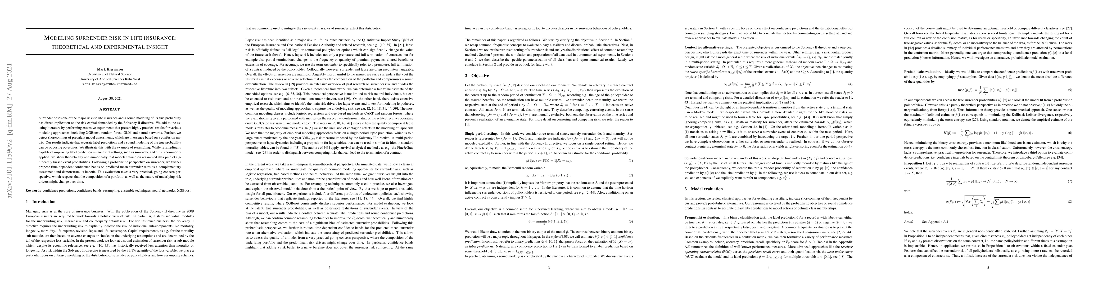 Surrender poses one of the major risks to life insurance and a sound modeling of its true probability has direct implication on the risk capital demanded by the Solvency II directive. We add to the existing literature by performing extensive experiments that present highly practical results for various modeling approaches, including XGBoost, random forest, GLM and neural networks. Further, we detect shortcomings of prevalent model assessments, which are in essence based on a confusion matrix. Our results indicate that accurate label predictions and a sound modeling of the true probability can be opposing objectives. We illustrate this with the example of resampling. While resampling is capable of improving label prediction in rare event settings, such as surrender, and thus is commonly applied, we show theoretically and numerically that models trained on resampled data predict significantly biased event probabilities. Following a probabilistic perspective on surrender, we further propose time-dependent confidence bands on predicted mean surrender rates as a complementary assessment and demonstrate its benefit. This evaluation takes a very practical, going concern perspective, which respects that the composition of a portfolio, as well as the nature of underlying risk drivers might change over time.