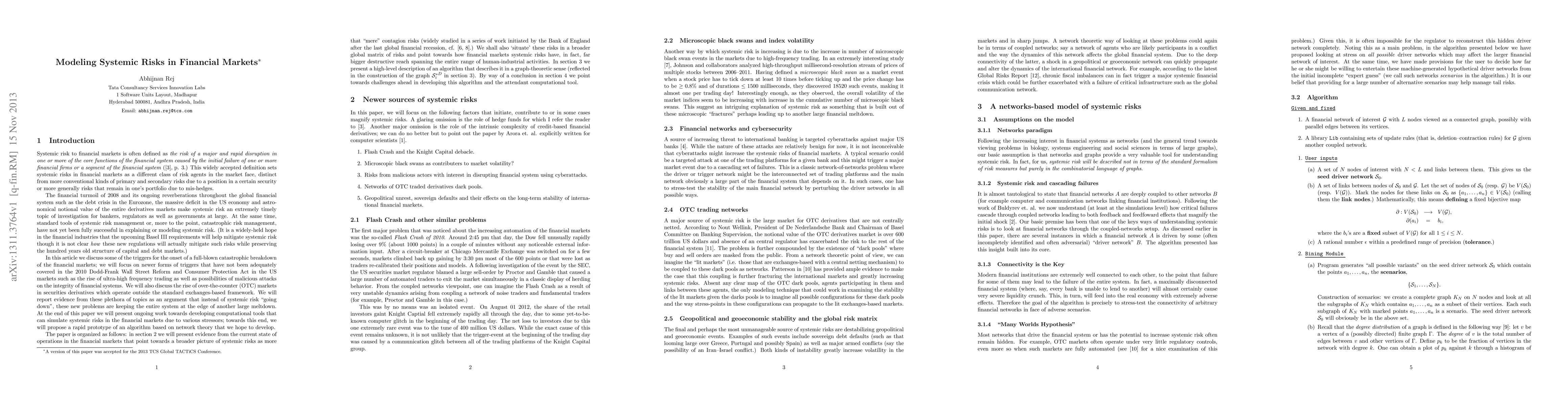 Summary: This paper surveys systemic risks in financial markets and introduces an algorithm that quantifies systemic risk by analyzing the interconnectedness of financial institutions through coupled network models.
