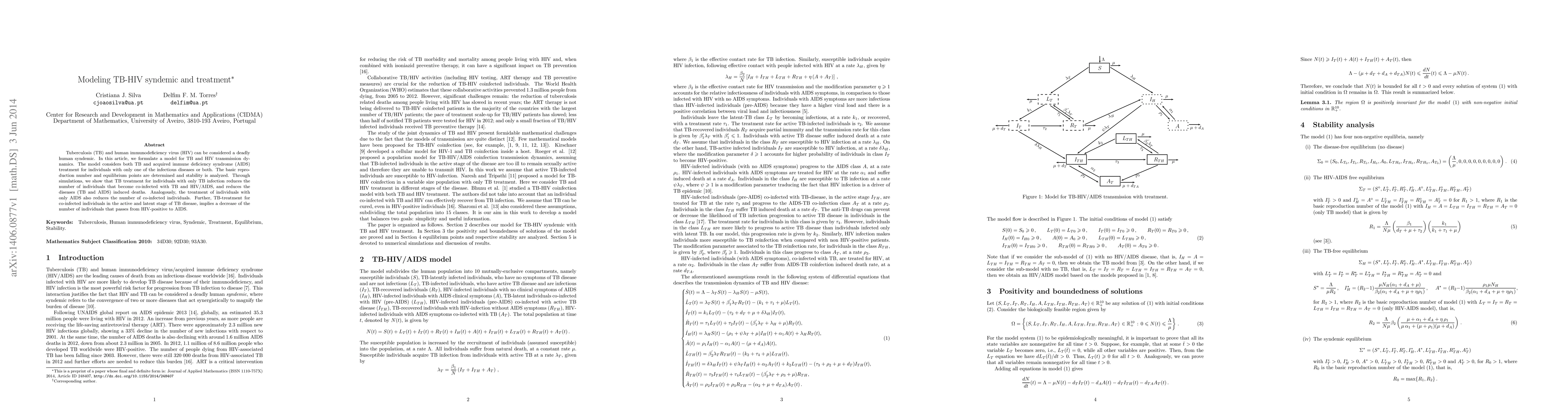This paper models the TB-HIV syndemic, analyzing transmission dynamics and treatment impacts. It finds that targeted TB and AIDS treatments reduce co-infections and deaths, while TB treatment for co-infected individuals lowers the progression from HIV to AIDS.