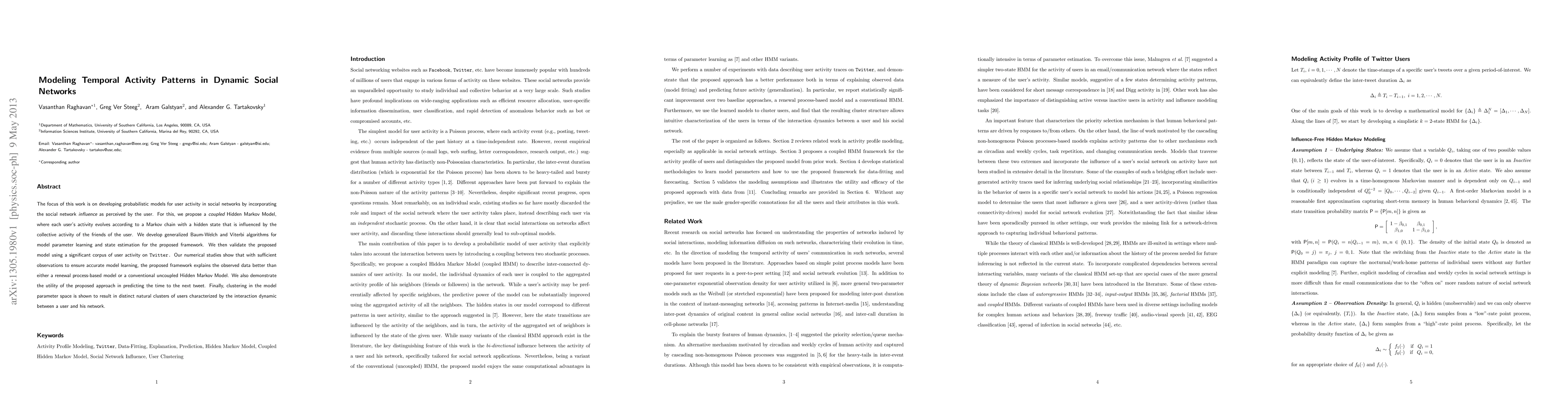 A new probabilistic model is proposed to capture social network influence on user activity in dynamic social networks. The model explains observed data better than existing models and can predict the time of next tweet with high accuracy.