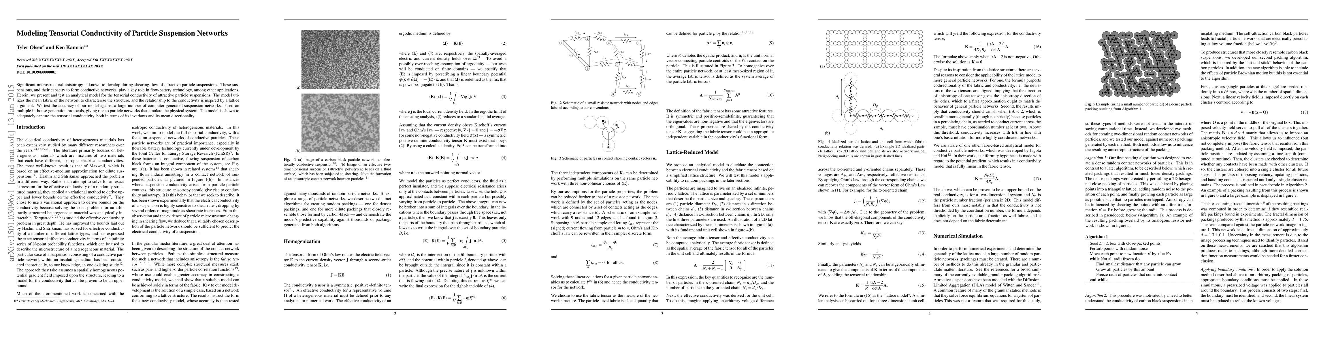 Significant microstructural anisotropy is known to develop during shearing flow of attractive particle suspensions. These suspensions, and their capacity to form conductive networks, play a key role in flow-battery technology, among other applications. Herein, we present and test an analytical model for the tensorial conductivity of attractive particle suspensions. The model utilizes the mean fabric of the network to characterize the structure, and the relationship to the conductivity is inspired by a lattice argument. We test the accuracy of our model against a large number of computer-generated suspension networks, based on multiple in-house generation protocols, giving rise to particle networks that emulate the physical system. The model is shown to adequately capture the tensorial conductivity, both in terms of its invariants and its mean directionality.
