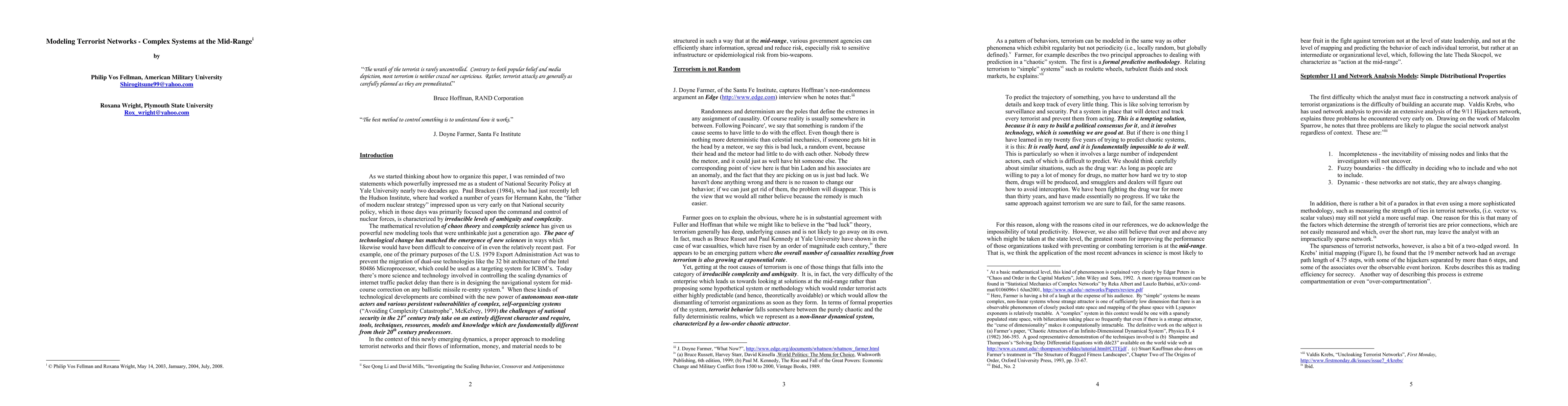 In this paper, we develop the themes presented at the 2003 Joint Complexity Conference at the London School of Economics and subsequently published in The Intelligencer (2004) and O Tempo Das Redes (2008). Following the data analysis of the 9/11 high-jacker network developed by Valdis Krebs from open sources, we apply social network theory to examine salient arguments regarding terrorism as seen from the standpoint of complex adaptive systems theory. In particular, we explore the concepts of group cohesion, adhesion and alternative network mappings derived from node removal.