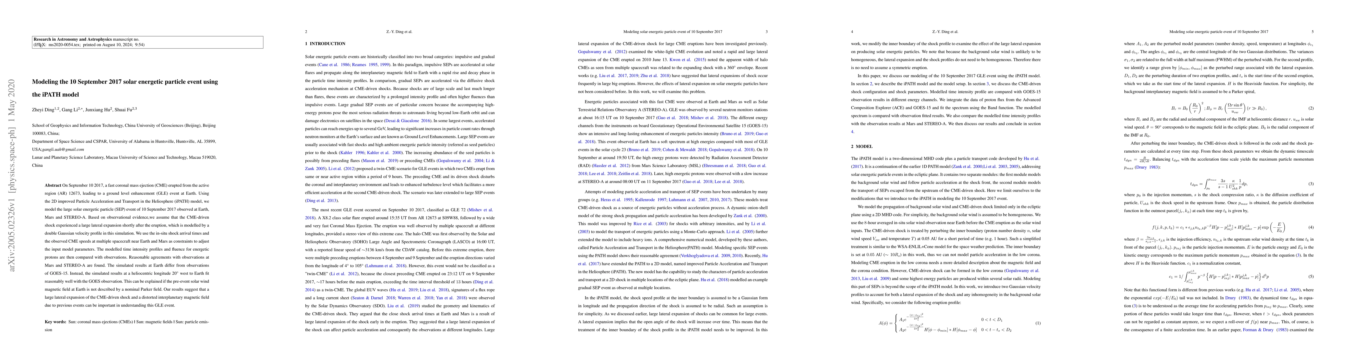 The paper models the 10 September 2017 solar energetic particle event using the iPATH model, finding reasonable agreement with observations at Mars and STEREO-A but discrepancies at Earth, suggesting the importance of a large lateral expansion of the CME-driven shock and a distorted interplanetary magnetic field.