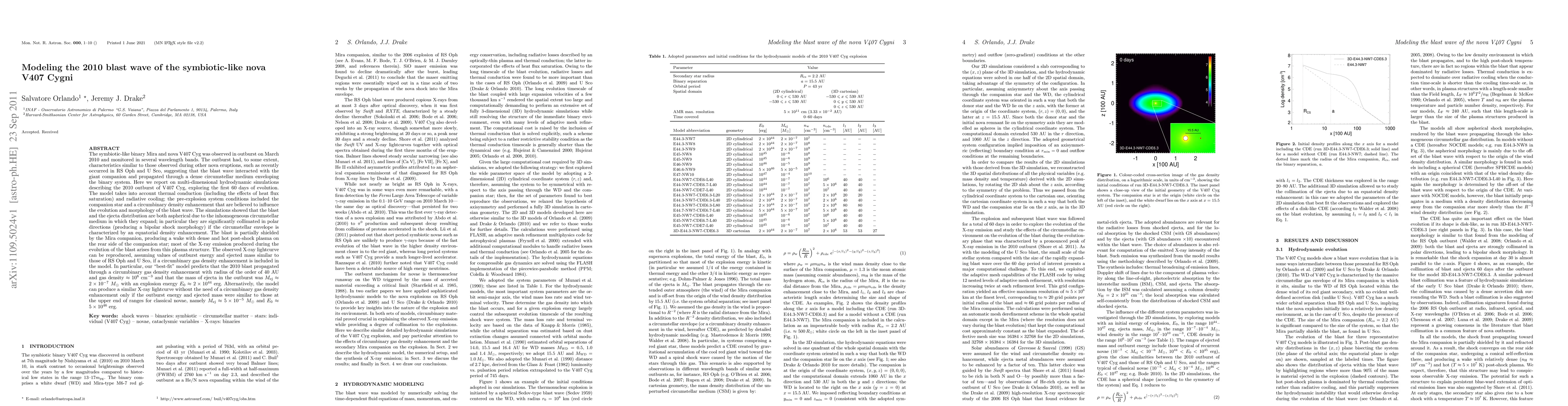 Researchers modelled a 2010 blast wave from the symbiotic-like nova V407 Cygni, finding that the blast is aspherical due to inhomogeneous circumstellar medium, and most X-ray emission arises from a dense, hot plasma structure behind the companion star.