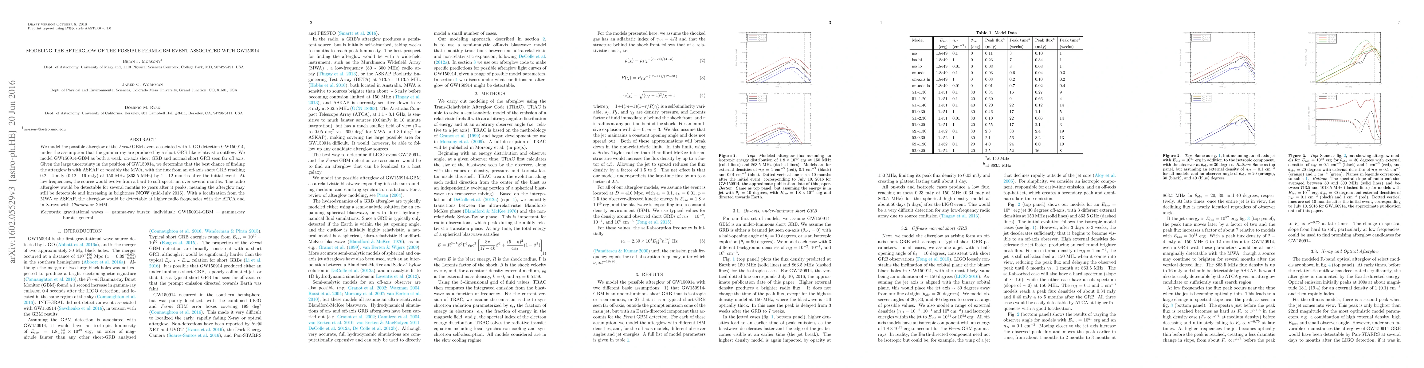 This paper models the potential afterglow of a Fermi GBM event linked to the LIGO detection GW150914, assuming it results from a short GRB-like outflow. It suggests that the best chance for detection lies with ASKAP or MWA, with the afterglow detectable at low frequencies for several months to years.