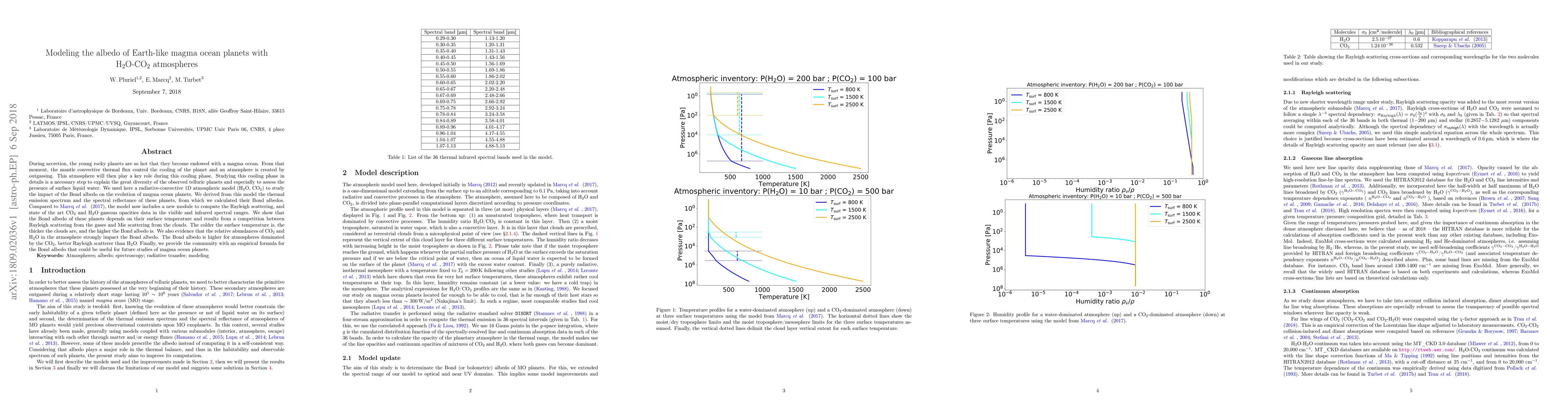 During accretion, the young rocky planets are so hot that they become endowed with a magma ocean. From that moment, the mantle convective thermal flux control the cooling of the planet and an atmosphere is created by outgassing. This atmosphere will then play a key role during this cooling phase. Studying this cooling phase in details is a necessary step to explain the great diversity of the observed telluric planets and especially to assess the presence of surface liquid water. We used here a radiative-convective 1D atmospheric model (H2O, CO2) to study the impact of the Bond albedo on the evolution of magma ocean planets. We derived from this model the thermal emission spectrum and the spectral reflectance of these planets, from which we calculated their Bond albedos. Compared to Marcq et al. (2017), the model now includes a new module to compute the Rayleigh scattering, and state of the art CO2 and H2O gaseous opacities data in the visible and infrared spectral ranges. We show that the Bond albedo of these planets depends on their surface temperature and results from a competition between Rayleigh scattering from the gases and Mie scattering from the clouds. The colder the surface temperature is, the thicker the clouds are, and the higher the Bond albedo is. We also evidence that the relative abundances of CO2 and H2O in the atmosphere strongly impact the Bond albedo. The Bond albedo is higher for atmospheres dominated by the CO2, better Rayleigh scatterer than H2O. Finally, we provide the community with an empirical formula for the Bond albedo that could be useful for future studies of magma ocean planets.