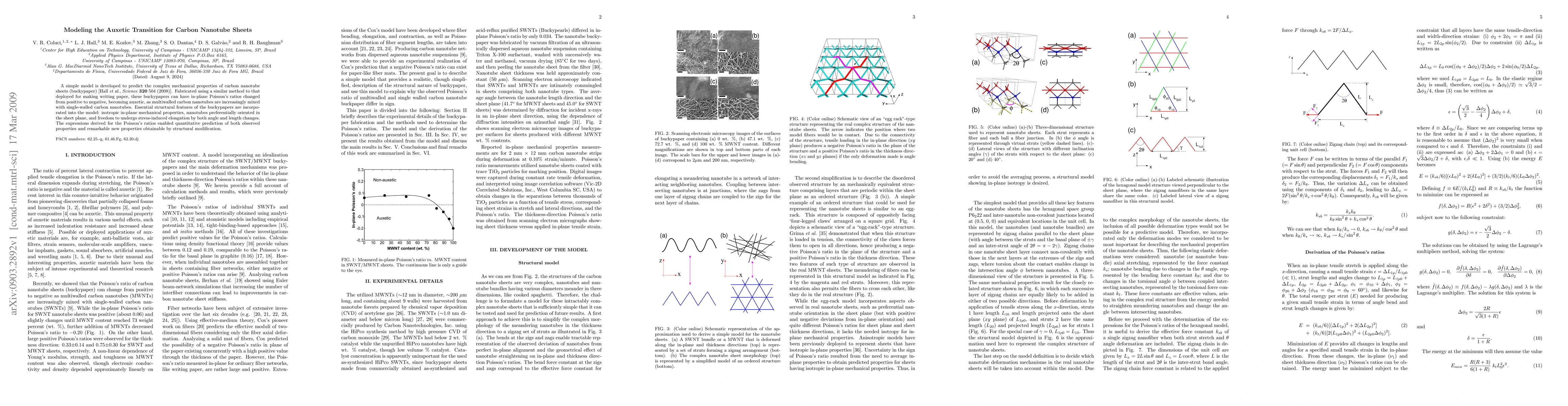 A simple model is developed to predict the complex mechanical properties of carbon nanotube sheets (buckypaper) [Hall \textit{et al.}, \textit{Science} \textbf{320} 504 (2008)]. Fabricated using a similar method to that deployed for making writing paper, these buckypapers can have in-plane Poisson's ratios changed from positive to negative, becoming auxetic, as multiwalled carbon nanotubes are increasingly mixed with single-walled carbon nanotubes. Essential structural features of the buckypapers are incorporated into the model: isotropic in-plane mechanical properties, nanotubes preferentially oriented in the sheet plane, and freedom to undergo stress-induced elongation by both angle and length changes. The expressions derived for the Poisson's ratios enabled quantitative prediction of both observed properties and remarkable new properties obtainable by structural modification.