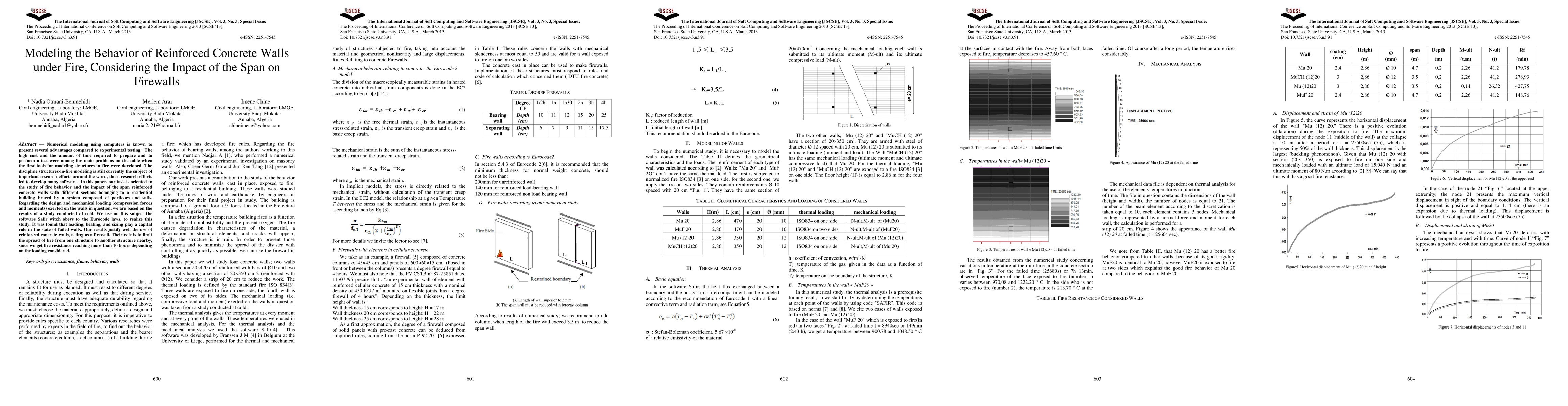 This paper uses numerical modeling with Safir software to study the fire behavior and impact of span on reinforced concrete walls in residential buildings. The findings indicate that loading, heating, and wall sizing significantly affect fire resistance, with walls achieving over 10 hours of fire resistance, validating their role as effective firewalls.