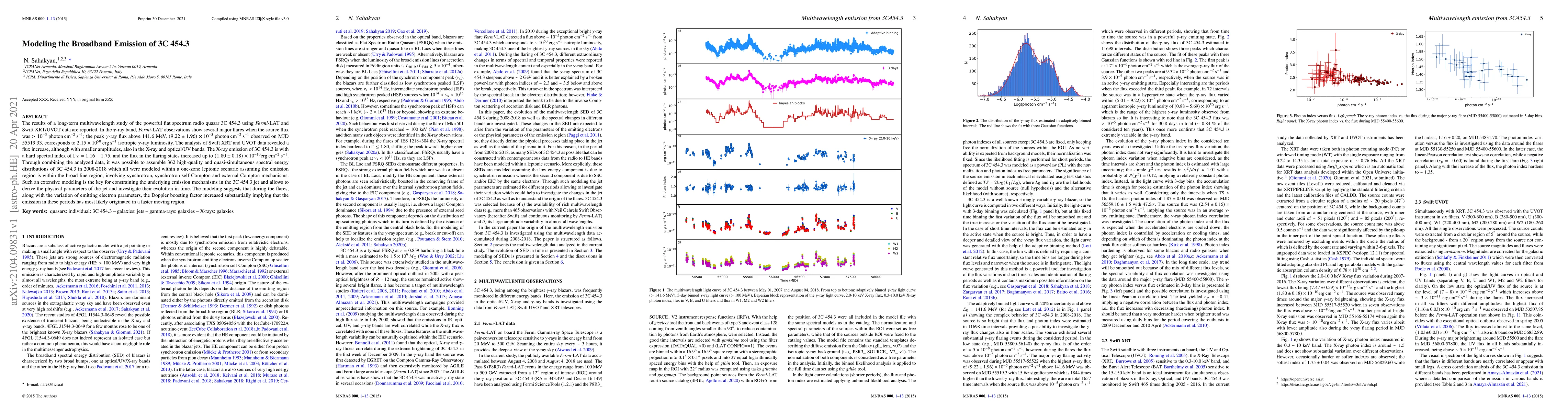 This study models the broadband emission of 3C 454.3 using multiwavelength data from Fermi-LAT, Swift XRT/UVOT, and finds that gamma-ray flares coincide with increased X-ray and optical emissions, suggesting a faster-moving emission region.