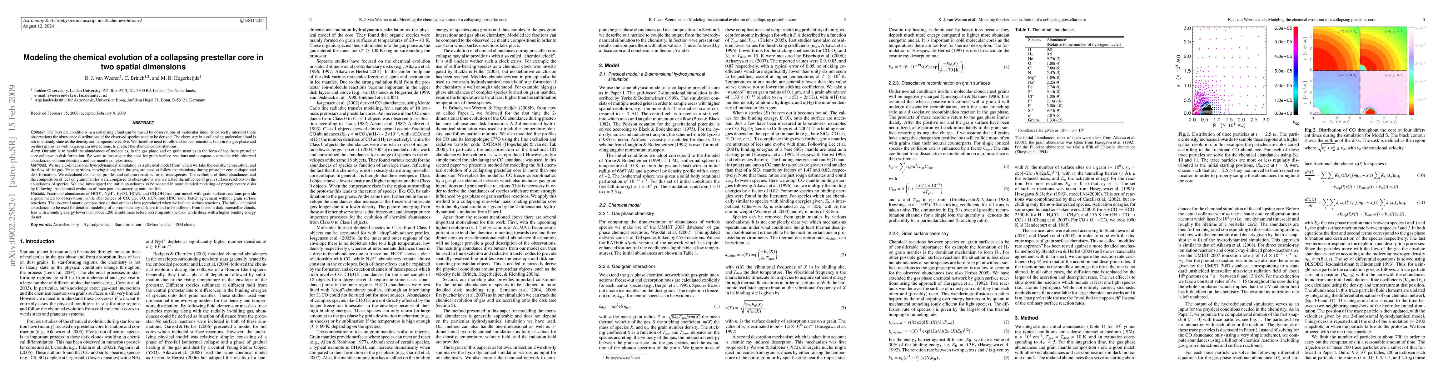 This paper models the chemical evolution of a collapsing prestellar core in two dimensions, focusing on the abundances of molecules in both gas phase and ice on dust grains. The study uses a 2D hydrodynamical simulation to track the density, temperature, and gas flow, and finds good agreement between modeled fractional abundances and observations, especially when including grain surface reactions.