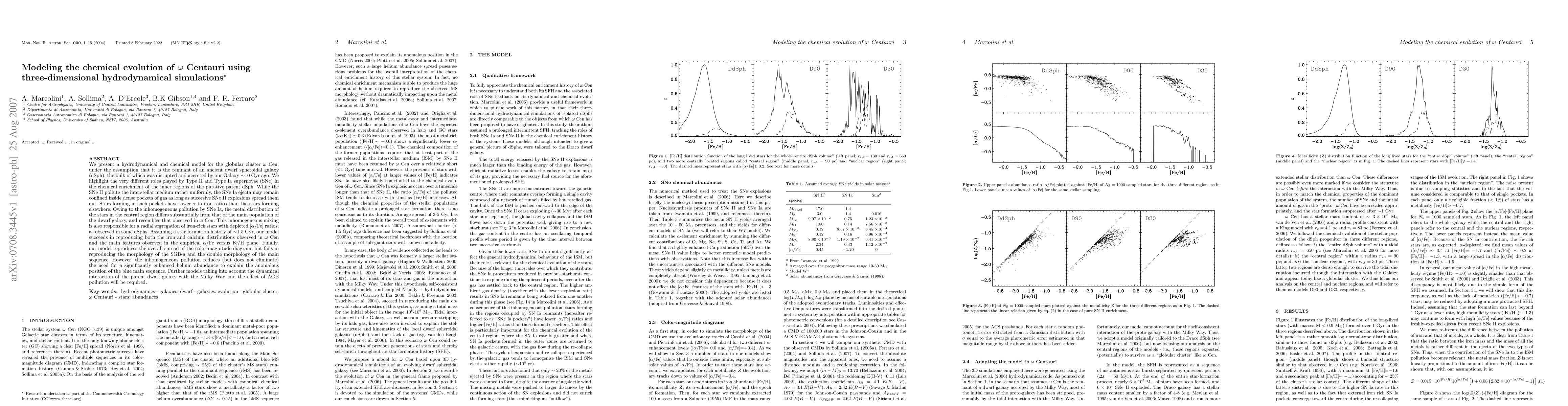 We present a hydrodynamical and chemical model for the globular cluster Omega Cen, under the assumption that it is the remnant of an ancient dwarf spheroidal galaxy (dSph), the bulk of which was disrupted and accreted by our Galaxy ~10 Gyr ago. We highlight the very different roles played by Type II and Type Ia supernovae (SNe) in the chemical enrichment of the inner regions of the putative parent dSph. While the SNe II pollute the interstellar medium rather uniformly, the SNe Ia ejecta may remain confined inside dense pockets of gas as long as succesive SNe II explosions spread them out. Stars forming in such pockets have lower alpha-to-iron ratios than the stars forming elsewhere. Owing to the inhomogeneous pollution by SNe Ia, the metal distribution of the stars in the central region differs substantially from that of the main population of the dwarf galaxy, and resembles that observed in Omega Cen. This inhomogeneous mixing is also responsible for a radial segregation of iron-rich stars with depleted [alpha/Fe] ratios, as observed in some dSphs. Assuming a star formation history of ~1.5 Gyr, our model succeeds in reproducing both the iron and calcium distributions observed in Omega Cen and the main features observed in the empirical alpha/Fe versus Fe/H plane. Finally, our model reproduces the overall spread of the color-magnitude diagram, but fails in reproducing the morphology of the SGB-a and the double morphology of the main sequence. However, the inhomogeneous pollution reduces (but does not eliminate) the need for a significantly enhanced helium abundance to explain the anomalous position of the blue main sequence. Further models taking into account the dynamical interaction of the parent dwarf galaxy with the Milky Way and the effect of AGB pollution will be required.