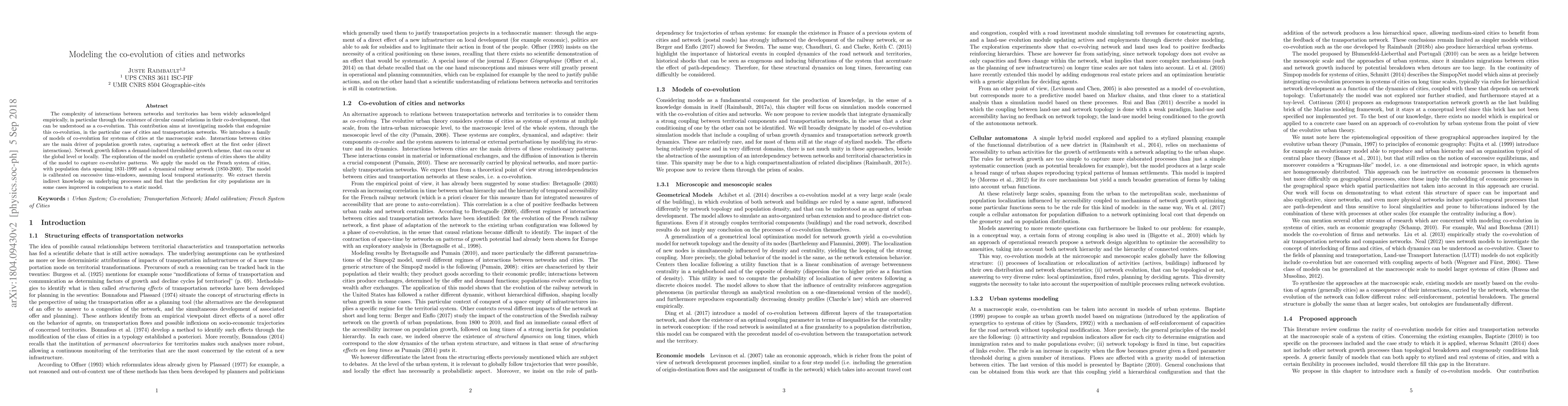 This paper develops models to understand the co-evolution between cities and transportation networks, showing how interactions between cities drive population growth and network growth follows demand-induced thresholds. The model's application to the French system of cities from 1831-1999 demonstrates improved predictions of city populations compared to static models.