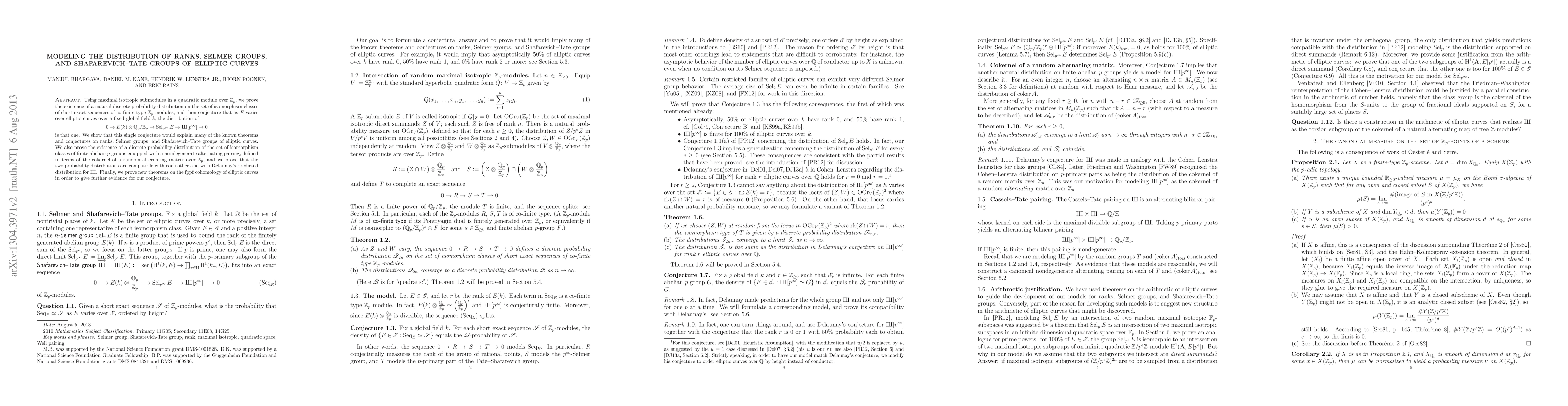 Using maximal isotropic submodules in a quadratic module over Z_p, we prove the existence of a natural discrete probability distribution on the set of isomorphism classes of short exact sequences of co-finite type Z_p-modules, and then conjecture that as E varies over elliptic curves over a fixed global field k, the distribution of 0 --> E(k) tensor Q_p/Z_p --> Sel_{p^infty} E --> Sha[p^infty] --> 0 is that one. We show that this single conjecture would explain many of the known theorems and conjectures on ranks, Selmer groups, and Shafarevich-Tate groups of elliptic curves. We also prove the existence of a discrete probability distribution of the set of isomorphism classes of finite abelian p-groups equipped with a nondegenerate alternating pairing, defined in terms of the cokernel of a random alternating matrix over Z_p, and we prove that the two probability distributions are compatible with each other and with Delaunay's predicted distribution for Sha. Finally, we prove new theorems on the fppf cohomology of elliptic curves in order to give further evidence for our conjecture.