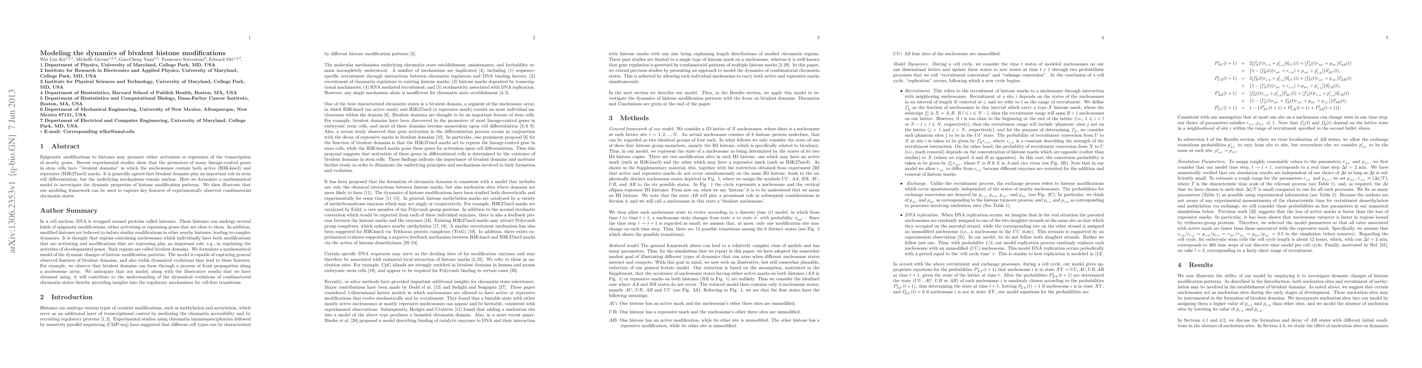 This paper formulates a mathematical model to explore the dynamics of bivalent histone modifications, which contain both active and repressive marks, and demonstrates its utility in capturing key features of experimentally observed chromatin states in stem cell differentiation.
