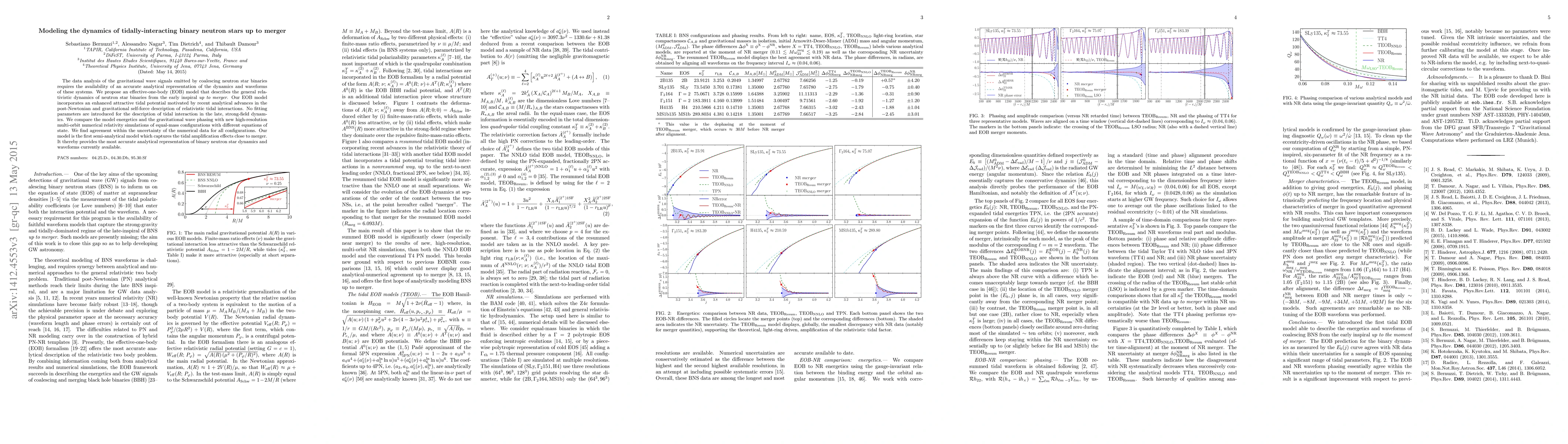 The data analysis of the gravitational wave signals emitted by coalescing neutron star binaries requires the availability of an accurate analytical representation of the dynamics and waveforms of these systems. We propose an effective-one-body (EOB) model that describes the general relativistic dynamics of neutron star binaries from the early inspiral up to merger. Our EOB model incorporates an enhanced attractive tidal potential motivated by recent analytical advances in the post-Newtonian and gravitational self-force description of relativistic tidal interactions. No fitting parameters are introduced for the description of tidal interaction in the late, strong-field dynamics. We compare the model energetics and the gravitational wave phasing with new high-resolution multi-orbit numerical relativity simulations of equal-mass configurations with different equations of state. We find agreement within the uncertainty of the numerical data for all configurations. Our model is the first semi-analytical model which captures the tidal amplification effects close to merger. It thereby provides the most accurate analytical representation of binary neutron star dynamics and waveforms currently available.