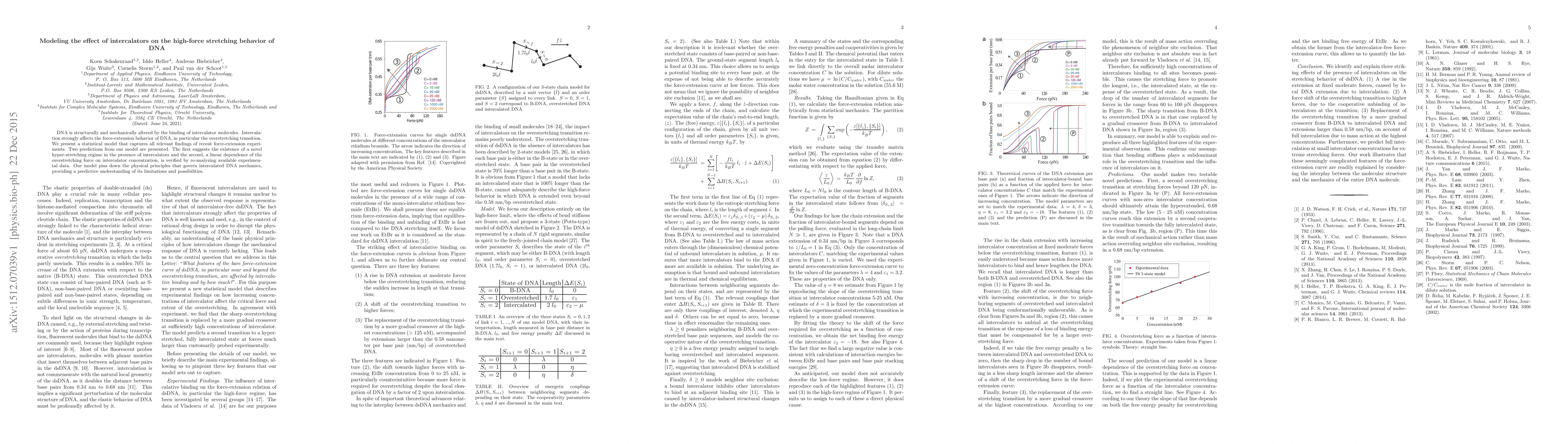 This paper presents a statistical model to elucidate how intercalator molecules alter the mechanical behavior of DNA under high-force stretching, predicting a new hyper-stretching regime and confirming a linear relationship between overstretching force and intercalator concentration. The model provides insights into the physical principles governing intercalated DNA mechanics.