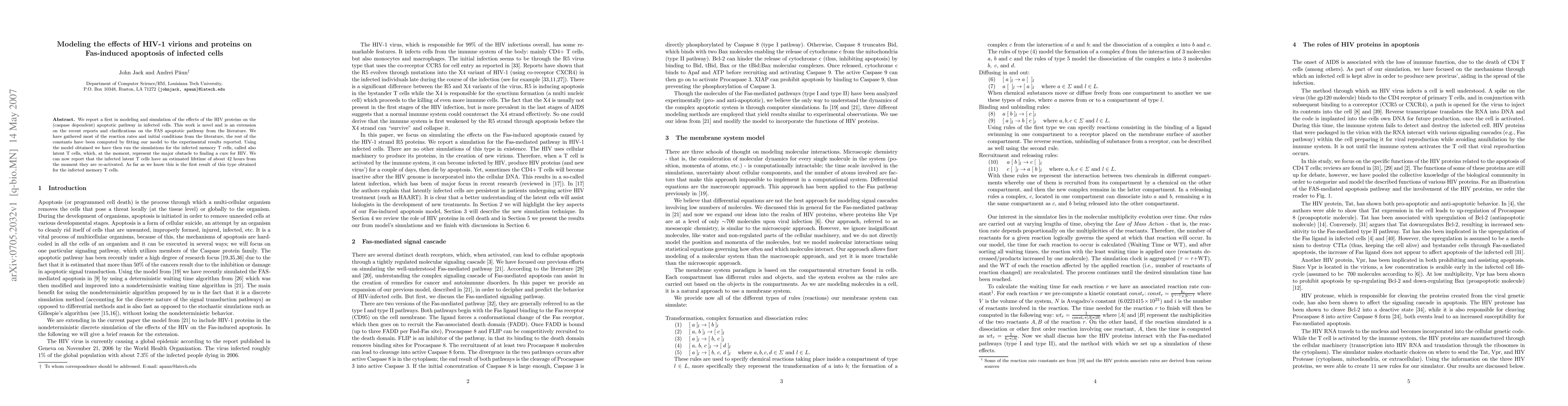 This paper models and simulates the impact of HIV-1 proteins on Fas-induced apoptosis in infected latent T cells, revealing an estimated 42-hour lifetime post-reactivation. The study extends previous research on the Fas apoptotic pathway and provides a novel computational approach to understanding the major obstacle in HIV cure research.