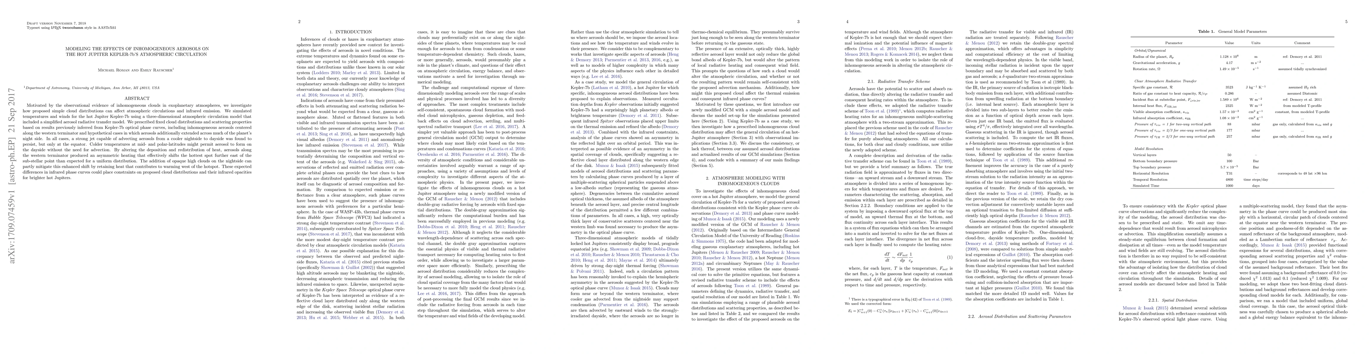 This study models the impact of inhomogeneous aerosols on the atmospheric circulation of the hot Jupiter Kepler-7b, finding that aerosols centered along the western terminator shift the hottest spot eastward, while high clouds on the nightside can mitigate this effect. The results suggest potential constraints on cloud distribution and infrared opacities for similar exoplanets.