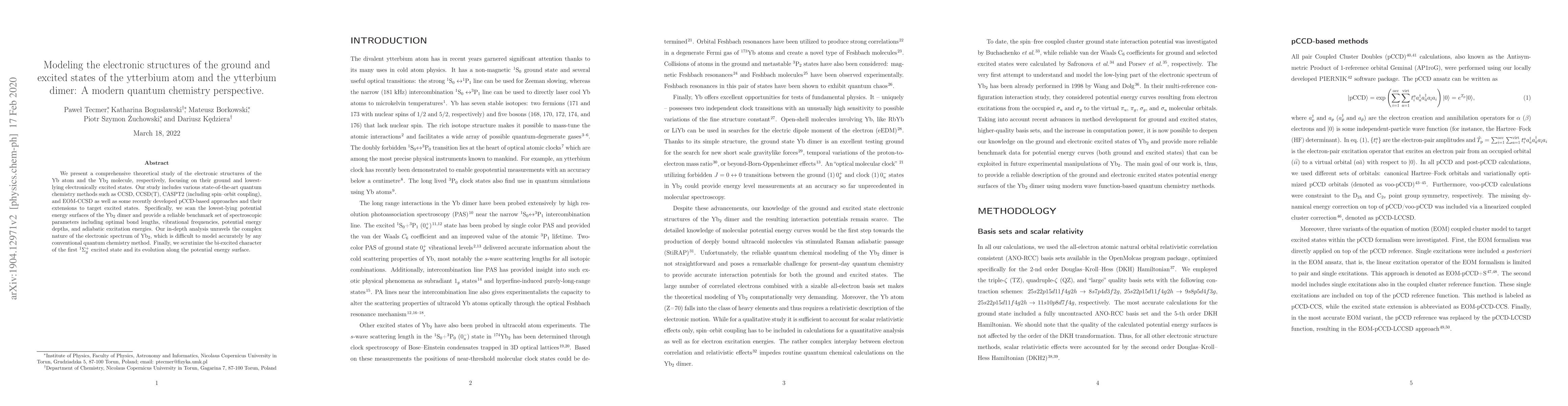 Researchers used modern quantum chemistry methods to study the electronic structures of ytterbium atom and dimer, revealing complex spectra that were difficult to model accurately.