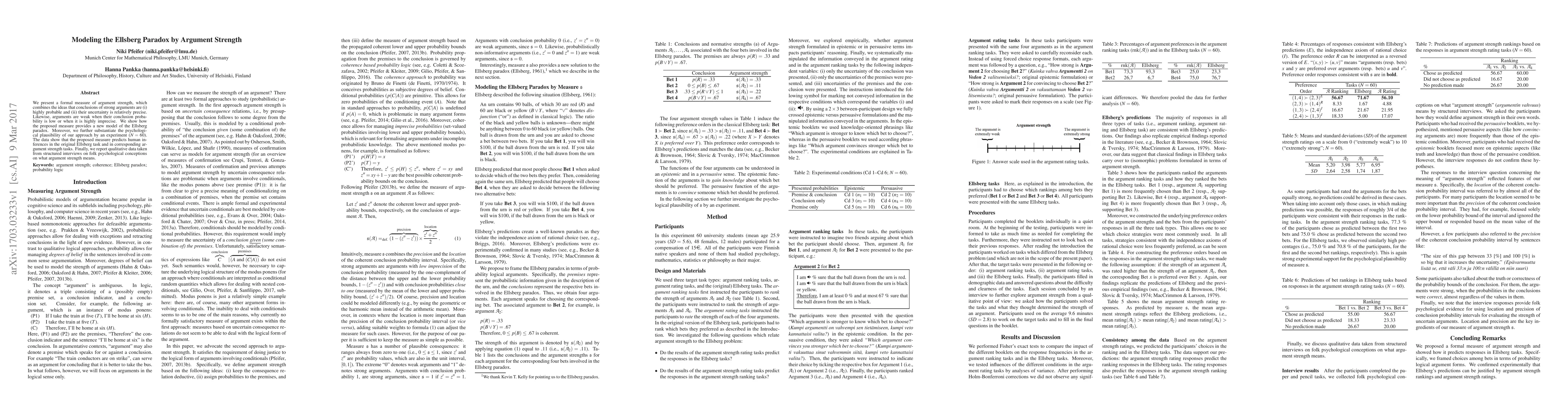 This research introduces a measure of argument strength, combining high probability and precise uncertainty. It models the Ellsberg Paradox and is validated by an experiment (N=60) and interviews, showing the measure predicts human judgments in Ellsberg tasks and argument strength tasks.