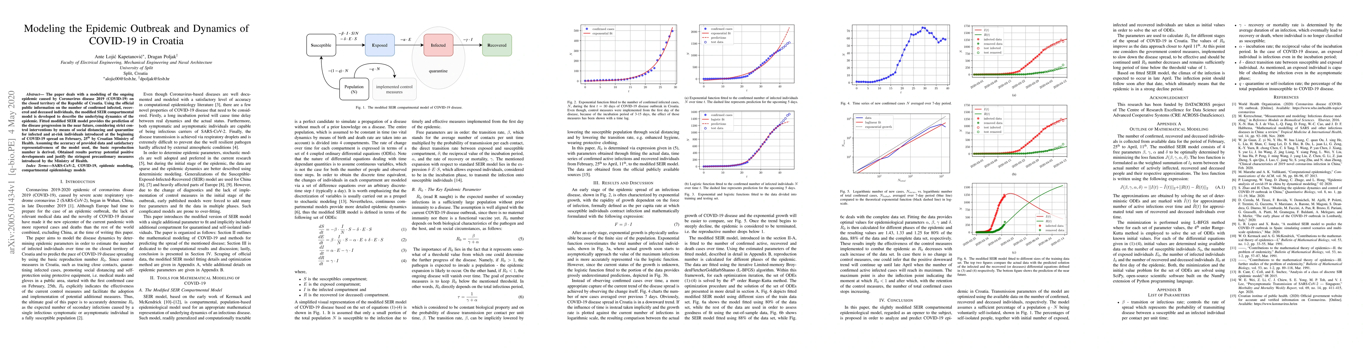 The paper models the COVID-19 epidemic in Croatia using a modified SEIR model, predicting disease progression under strict control measures. The study finds that the stringent interventions may lead to positive outcomes, justifying the measures taken by the Croatian Ministry of Health.