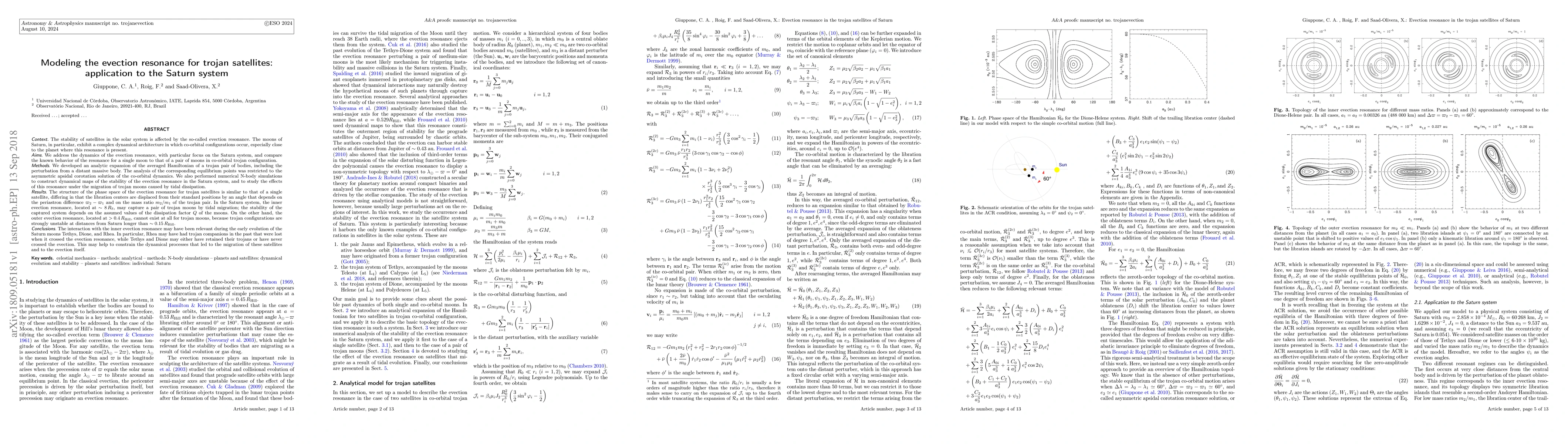 This paper models the evection resonance dynamics in Saturn's system, focusing on trojan satellites. It finds that the phase space structure of the evection resonance for trojan pairs differs from single satellites due to displaced libration centers, influenced by periastron difference and mass ratio. The study suggests that the inner evection resonance may have played a role in the early evolution of Saturn's moons, potentially explaining the migration and loss of trojan companions.