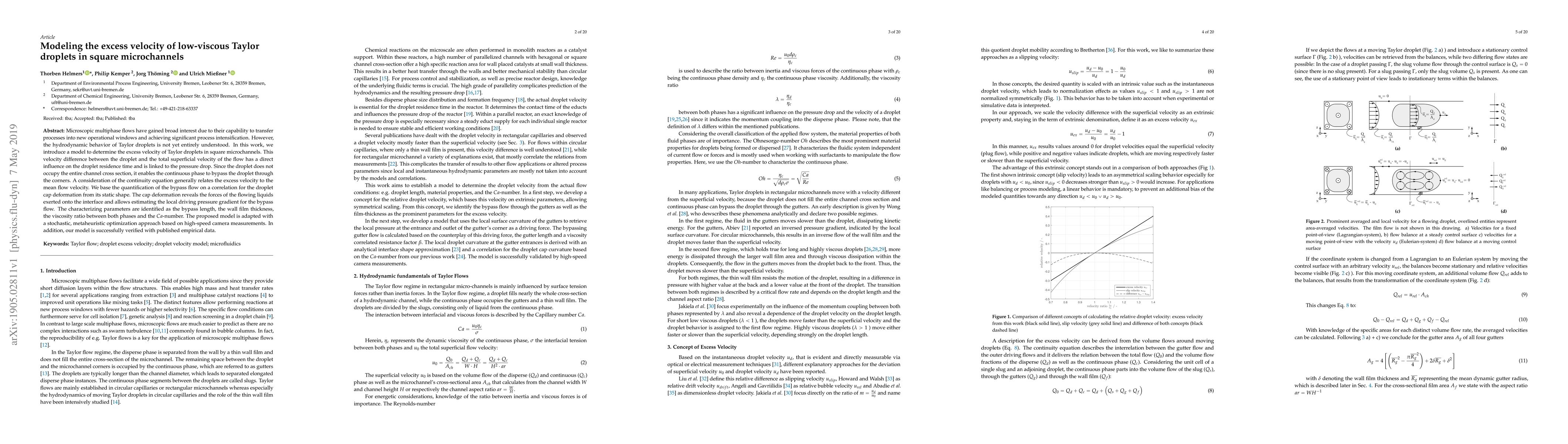 This paper presents a model to determine the excess velocity of Taylor droplets in square microchannels, highlighting the influence of droplet cap deformation on the bypass flow. The model, validated with empirical data, identifies key parameters such as bypass length and viscosity ratio, facilitating better understanding of droplet hydrodynamics in multiphase flows.