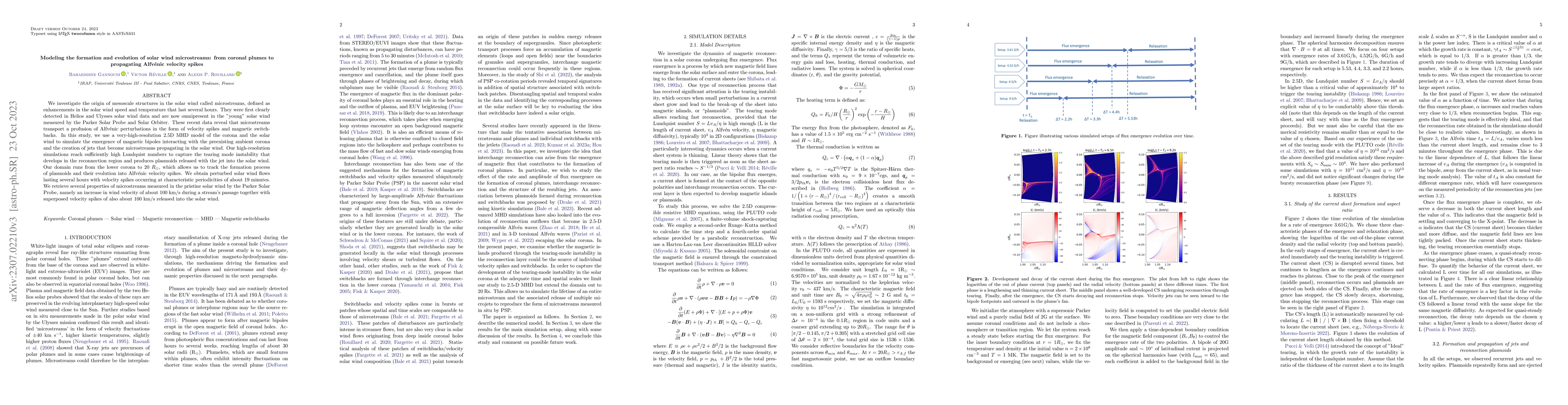 This paper models the formation and evolution of solar wind microstreams, showing how they originate from coronal plumes and develop into Alfv\'enic velocity spikes. The study uses high-resolution 2.5 MHD simulations to capture the emergence of magnetic bipoles and the tearing mode instability, producing plasmo\"ids that evolve into periodic velocity spikes observed in the solar wind.